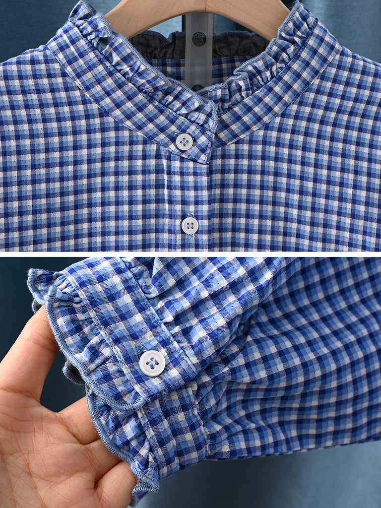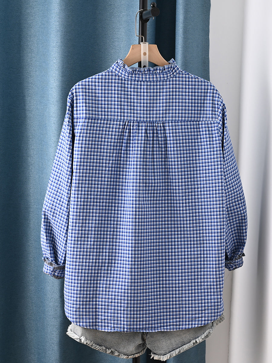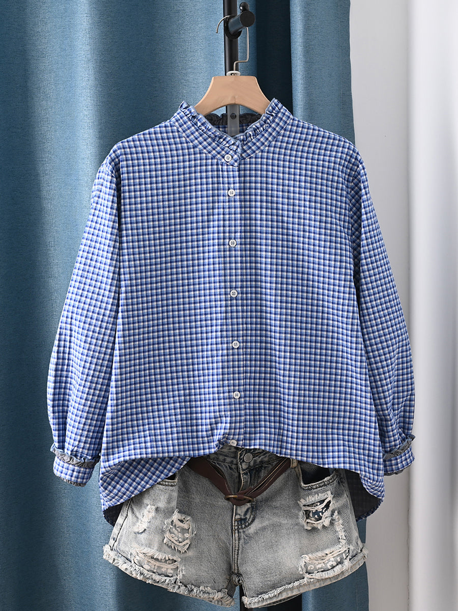女士藝術格紋100%純棉襯衫
