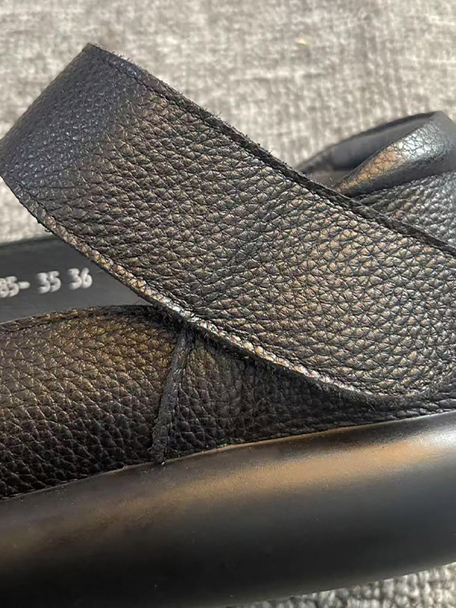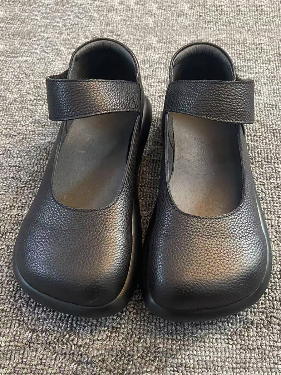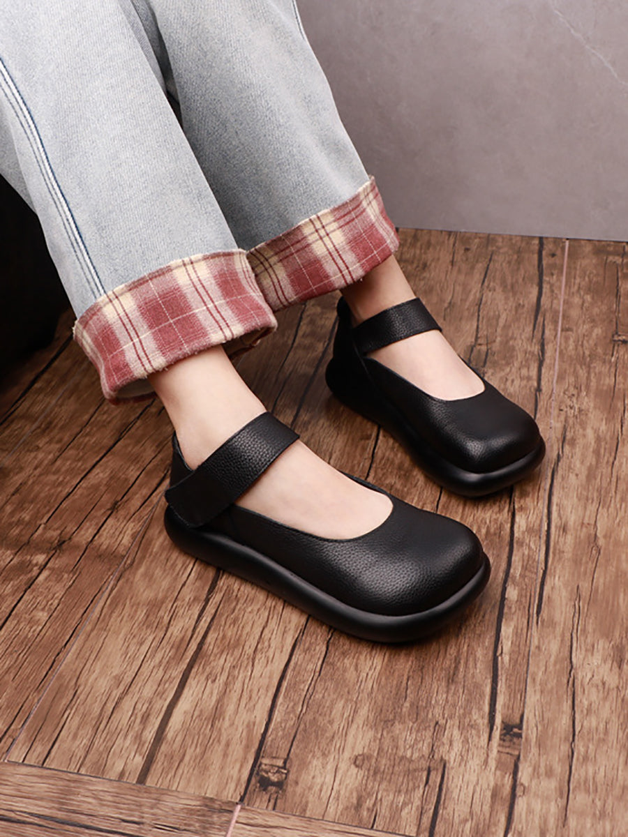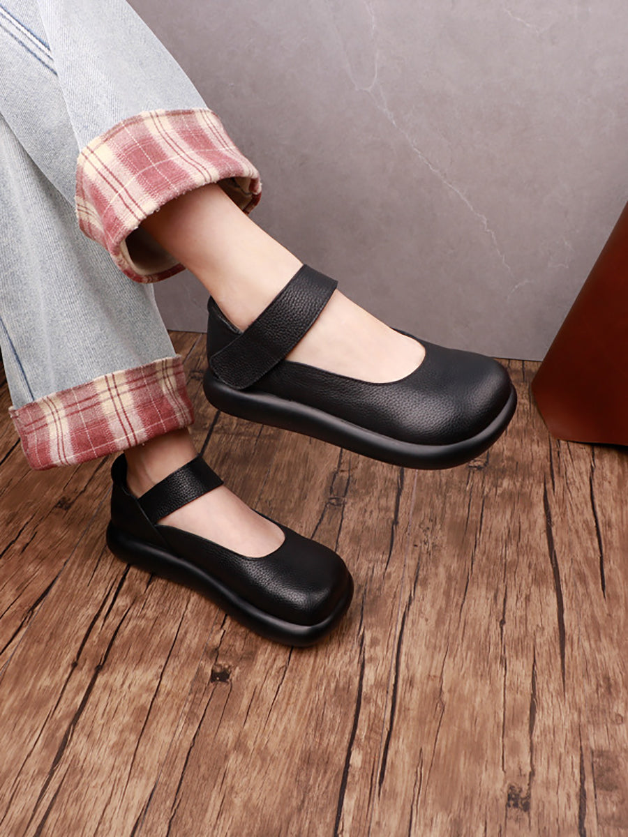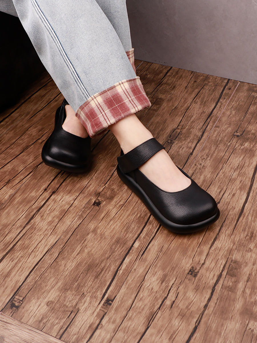 女士復古柔軟真皮平底鞋