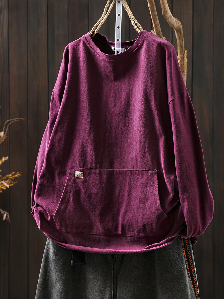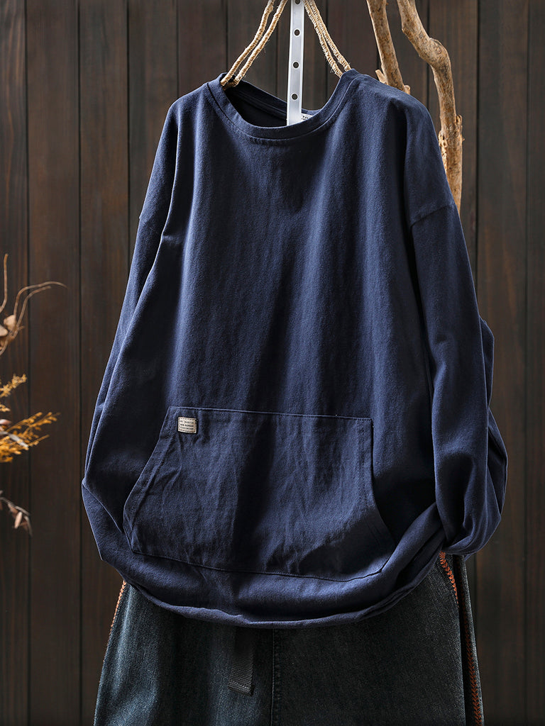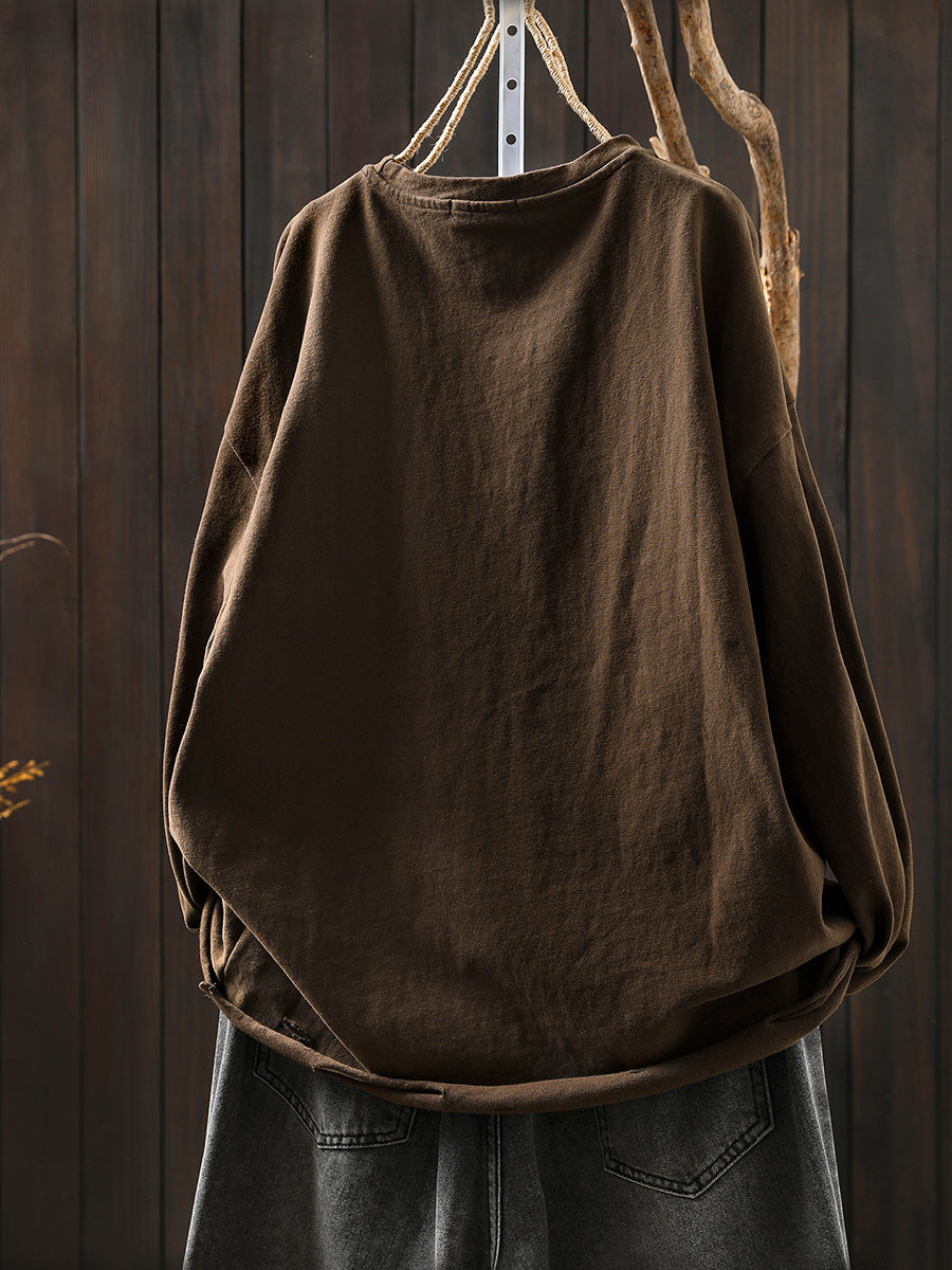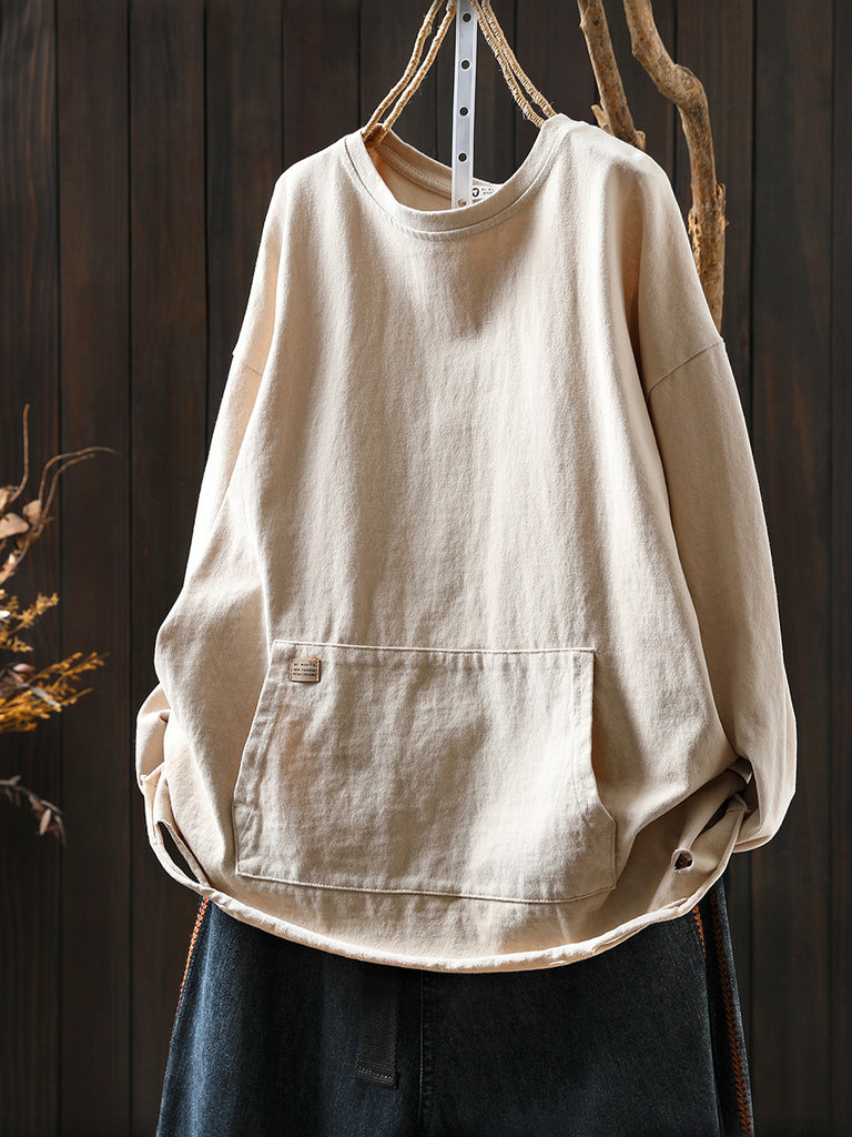 女士秋季休閒純色圓領襯衫