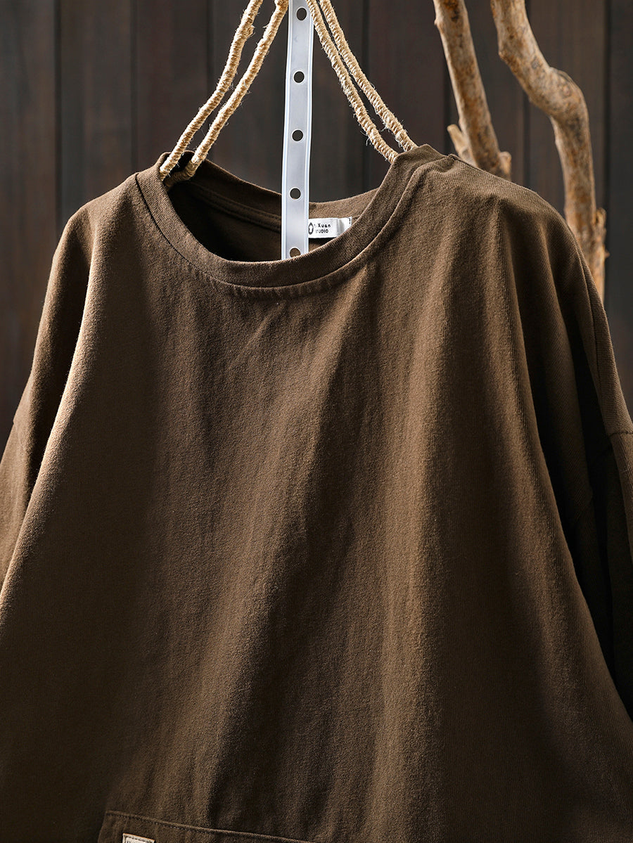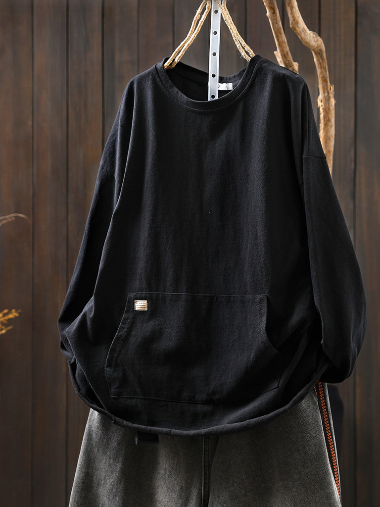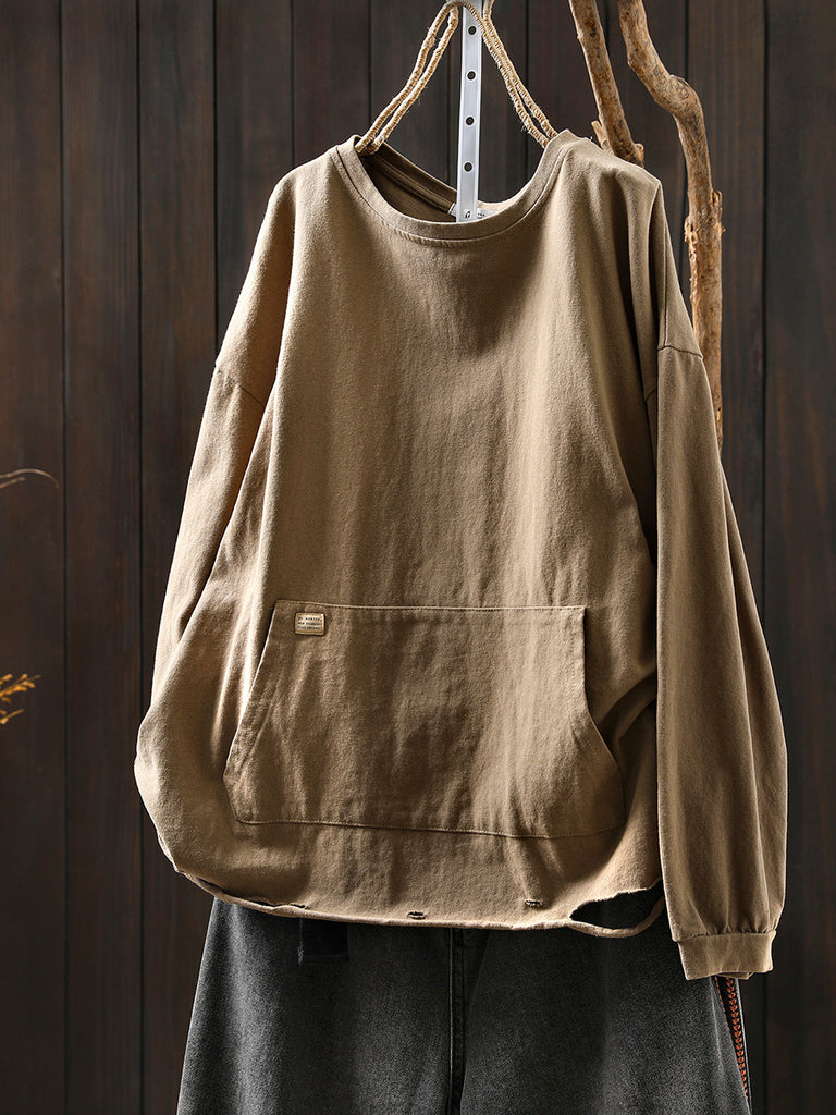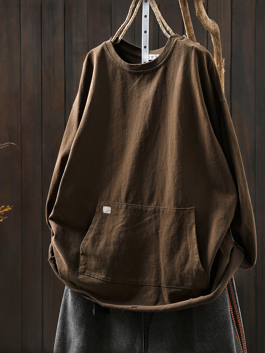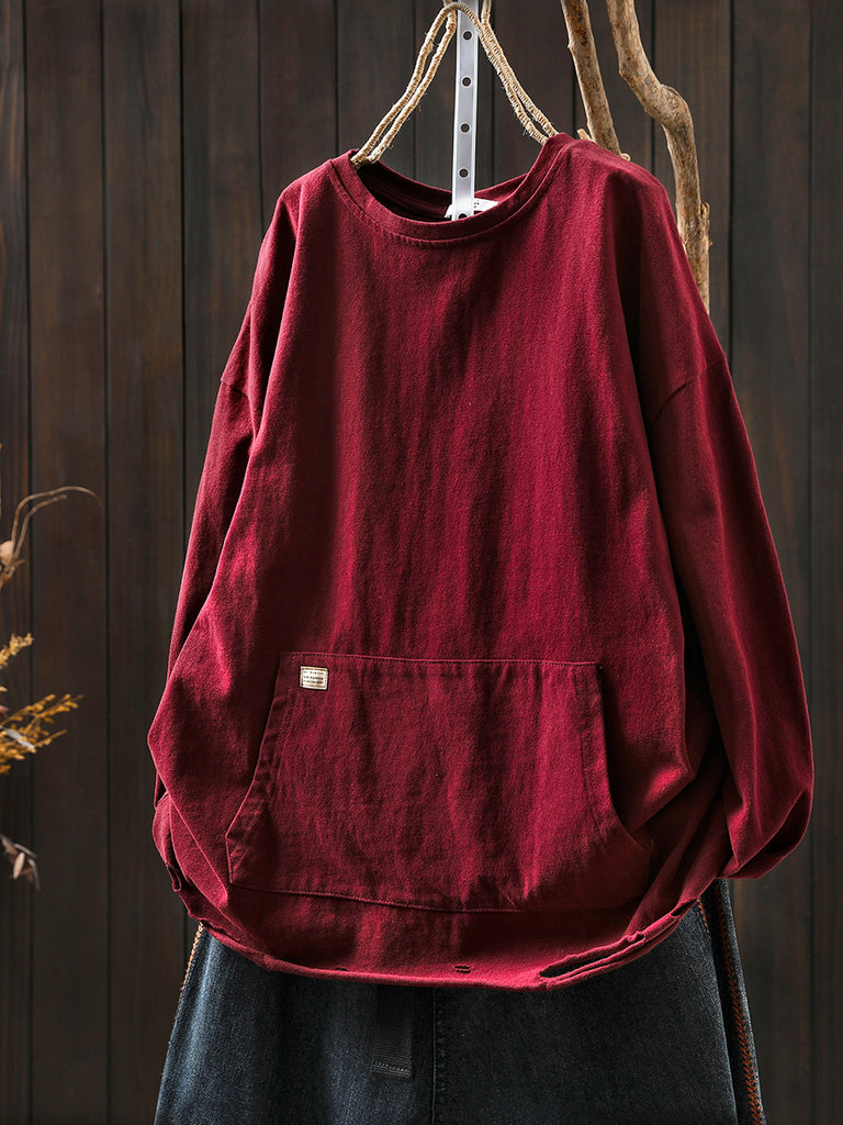 女士秋季休閒純色圓領襯衫