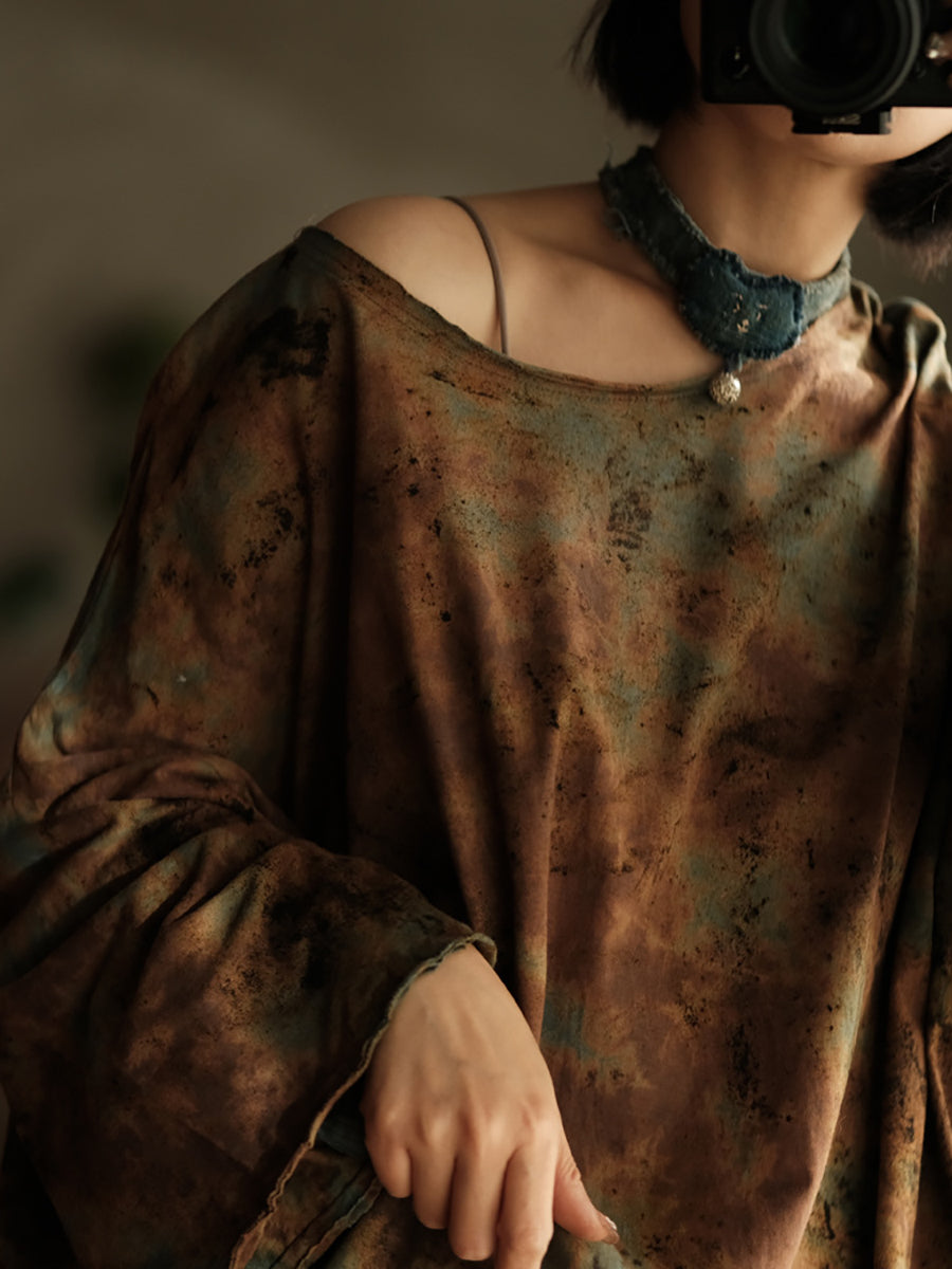 女士夏季復古花朵圓領棉質襯衫
