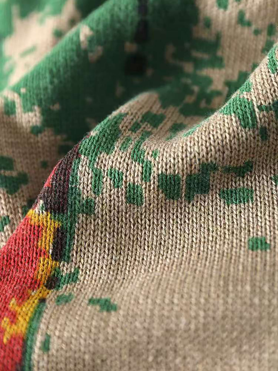 這件衣服由棉製成,並帶有花朵圖案。領子是半高領,袖子是全長的,插肩設計充滿藝術氣息。這件毛衣非常適合冬季和秋季。