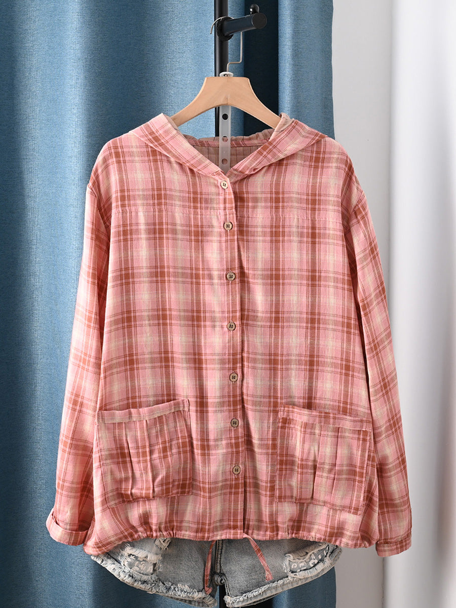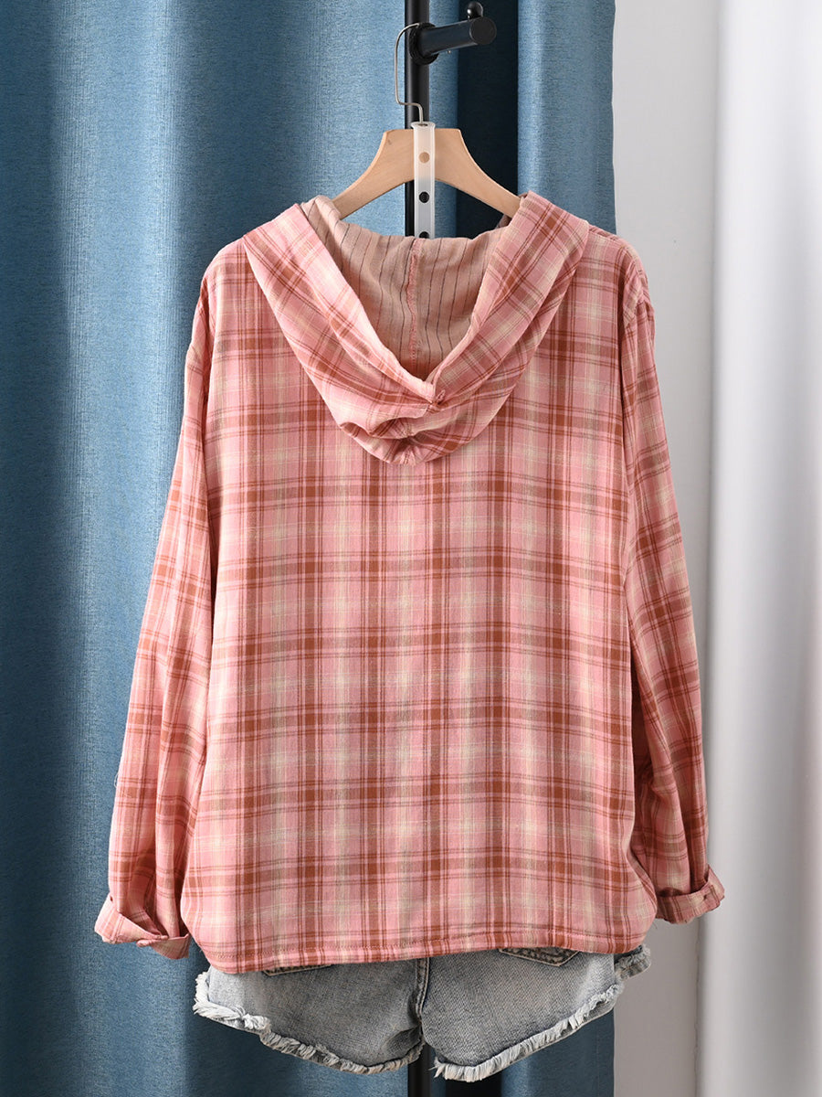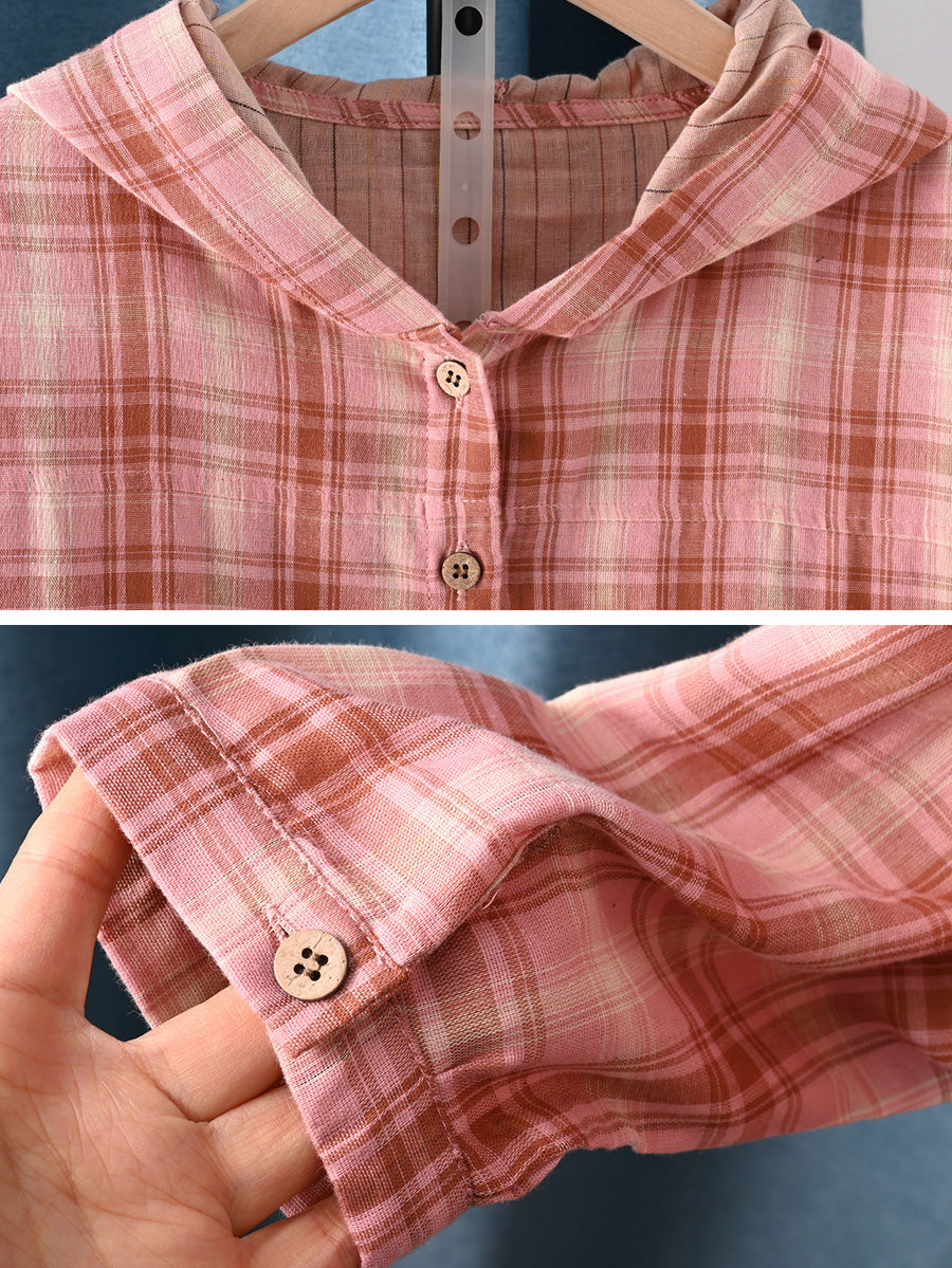 女士夏季藝術格紋100%純棉連帽衫