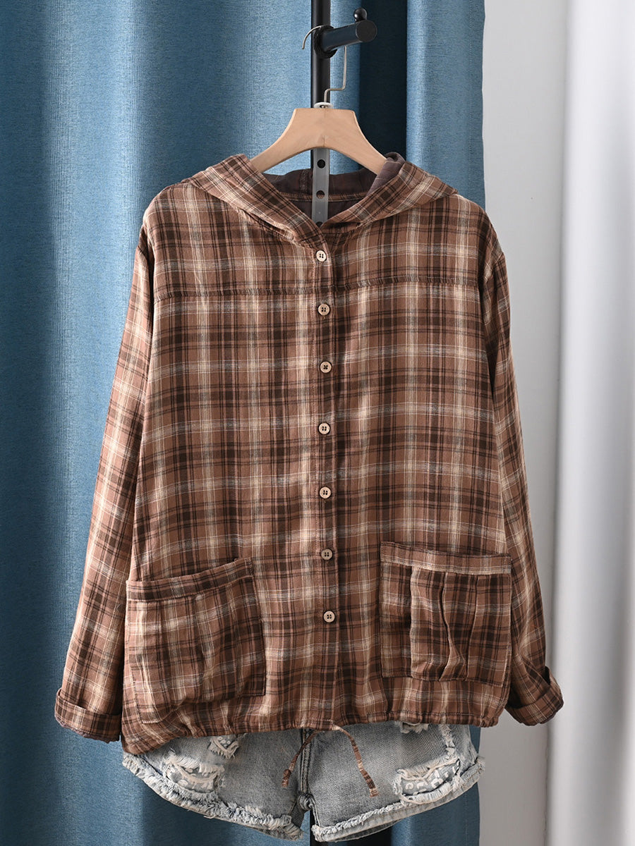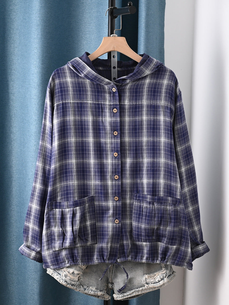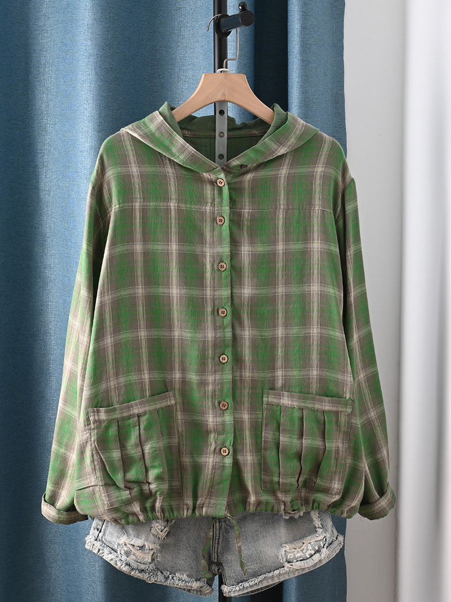 女士夏季藝術格紋100%純棉連帽衫