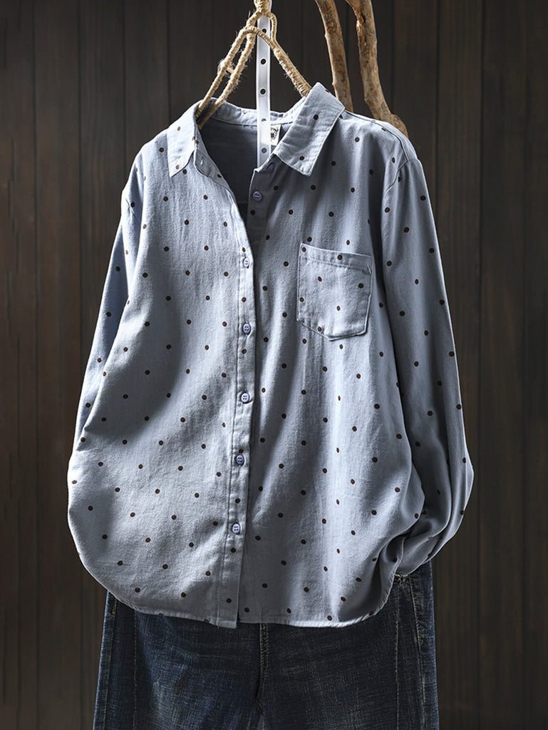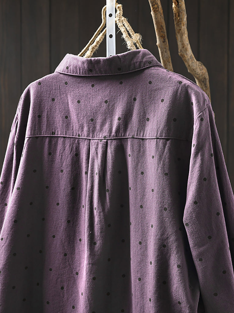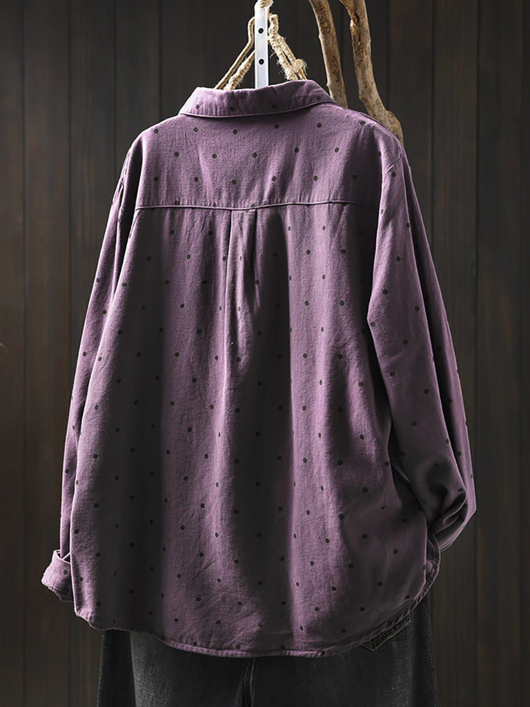 這款復古秋季襯衫採用純色圖案和翻領,長袖和常規復古風格。它專為寒冷季節而設計,是任何衣櫥的百搭時尚之選。