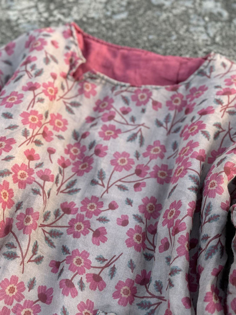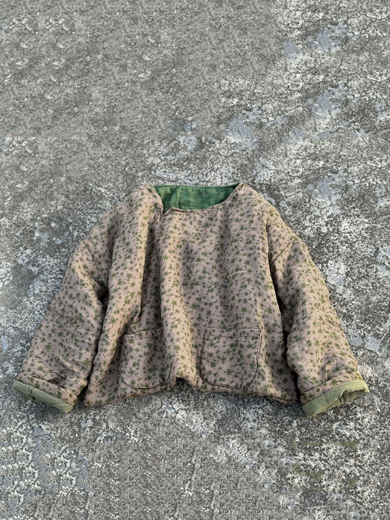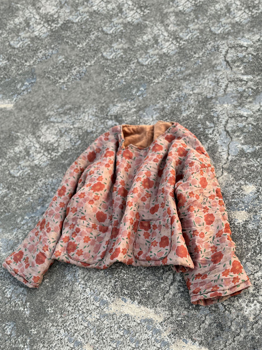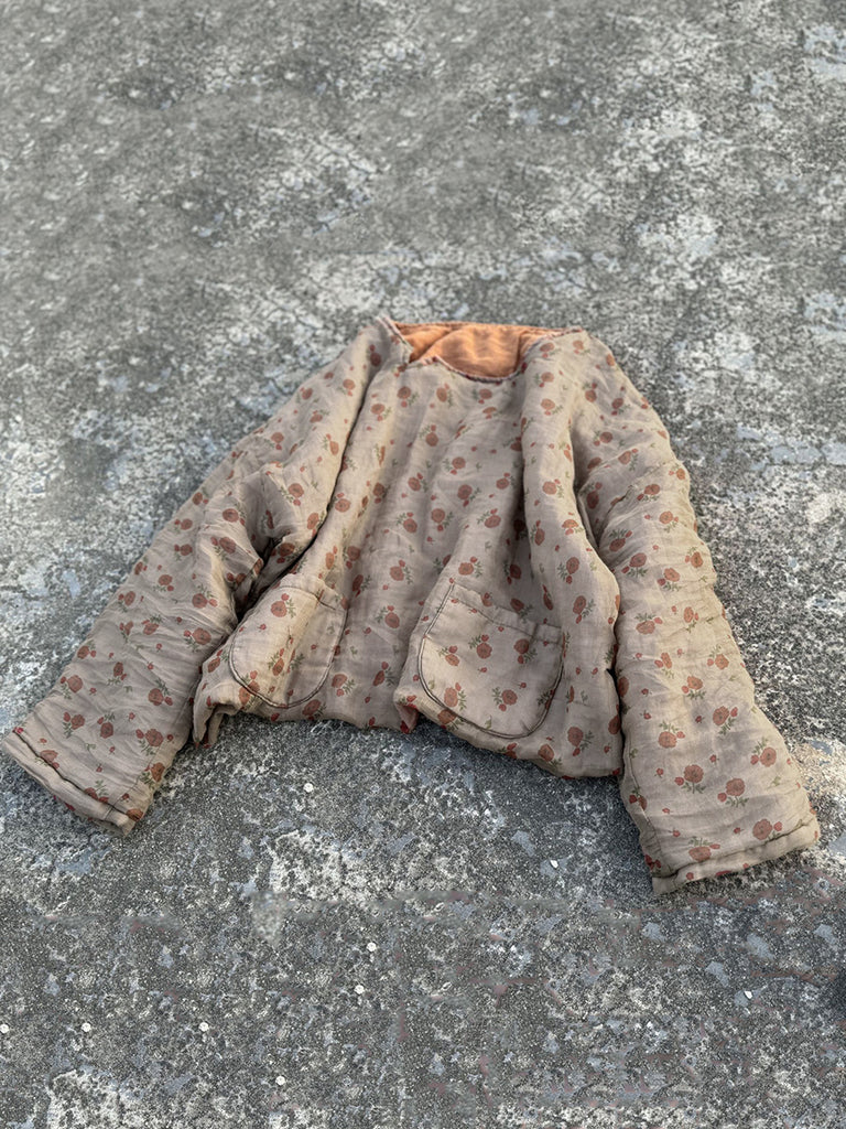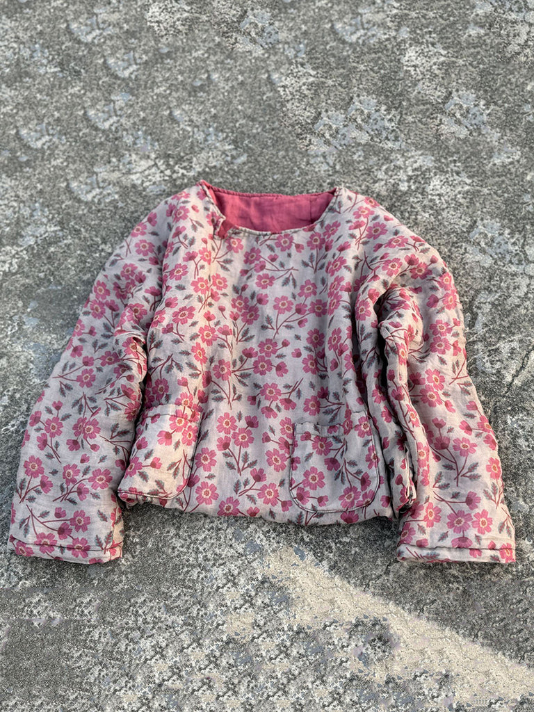 女復古花卉 O 領 100% 苧麻襯墊大衣