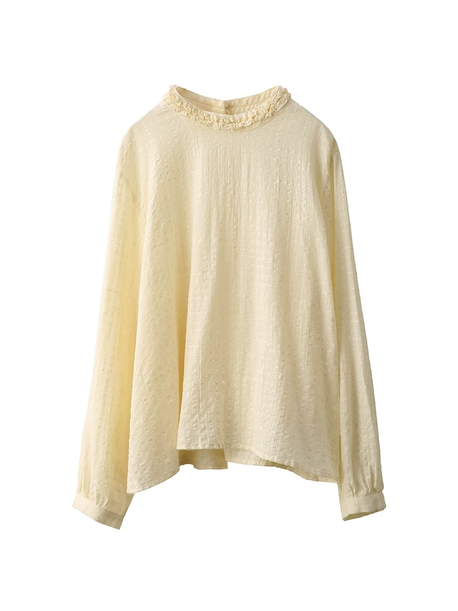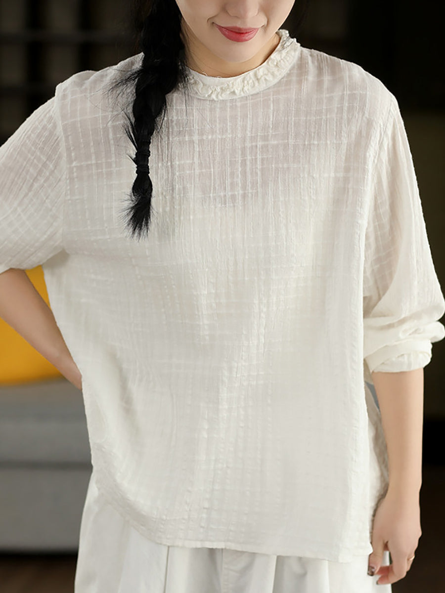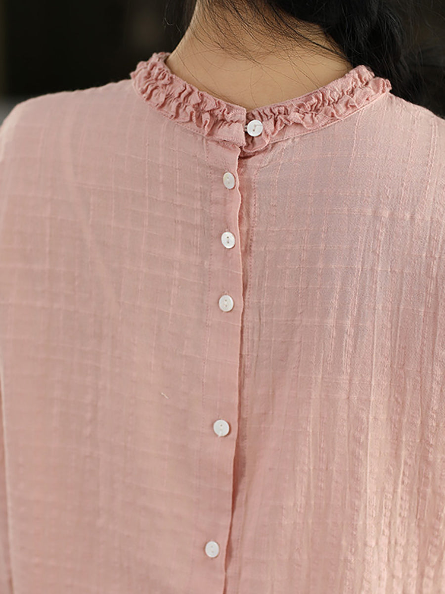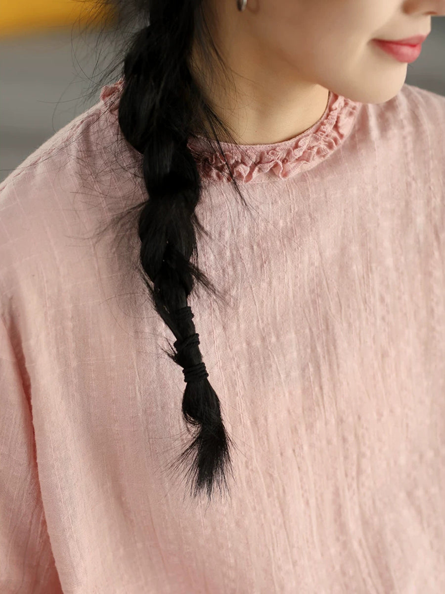 Women Spring Artsy 100%Cotton Stand Collar Blouse