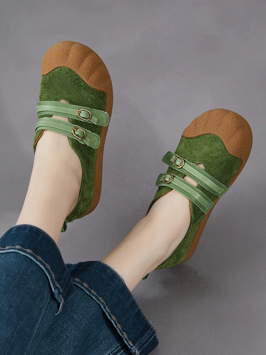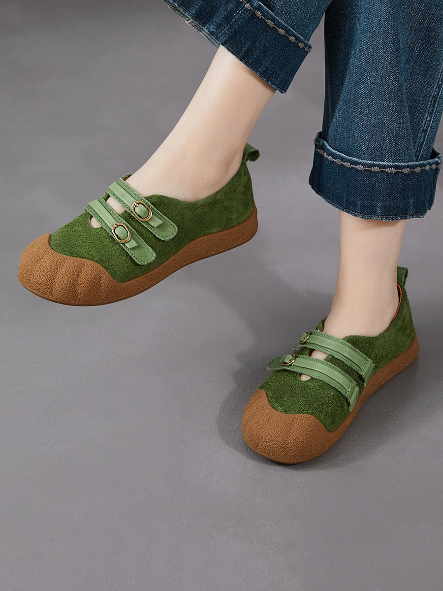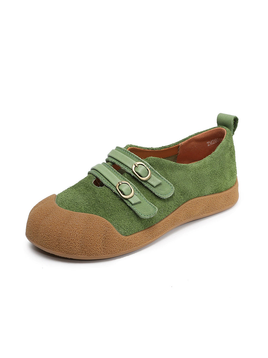 Women Spring Retro Genuine Leather Flat Shoes