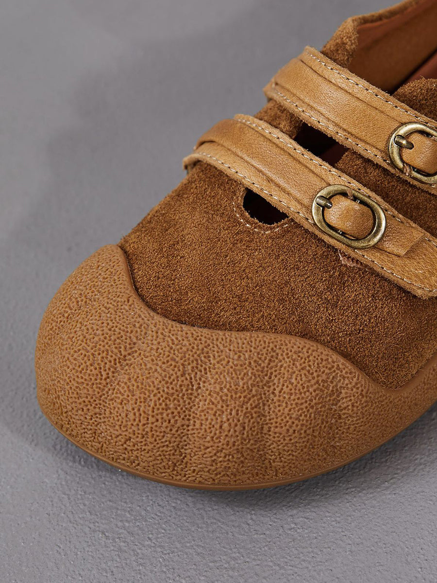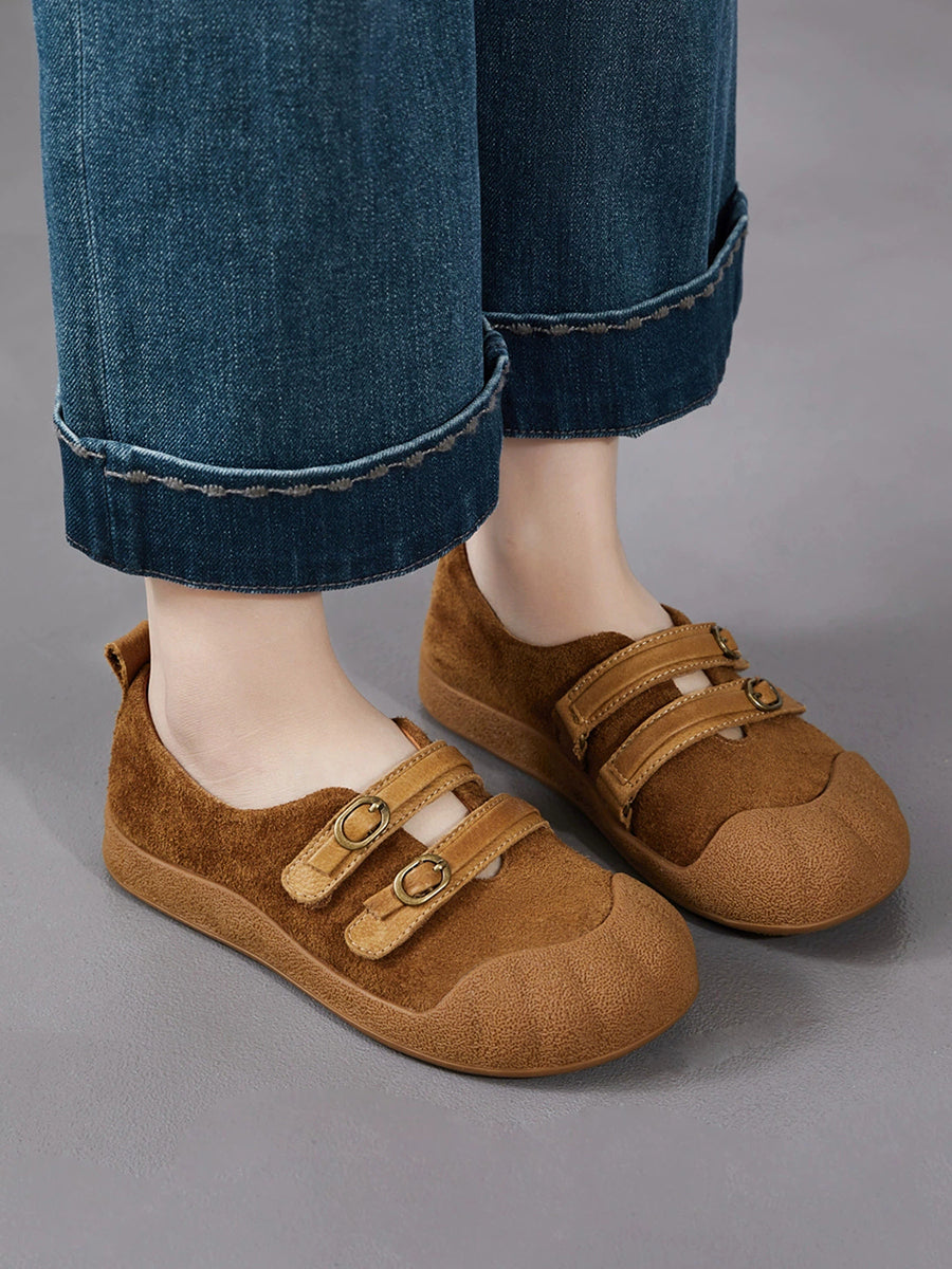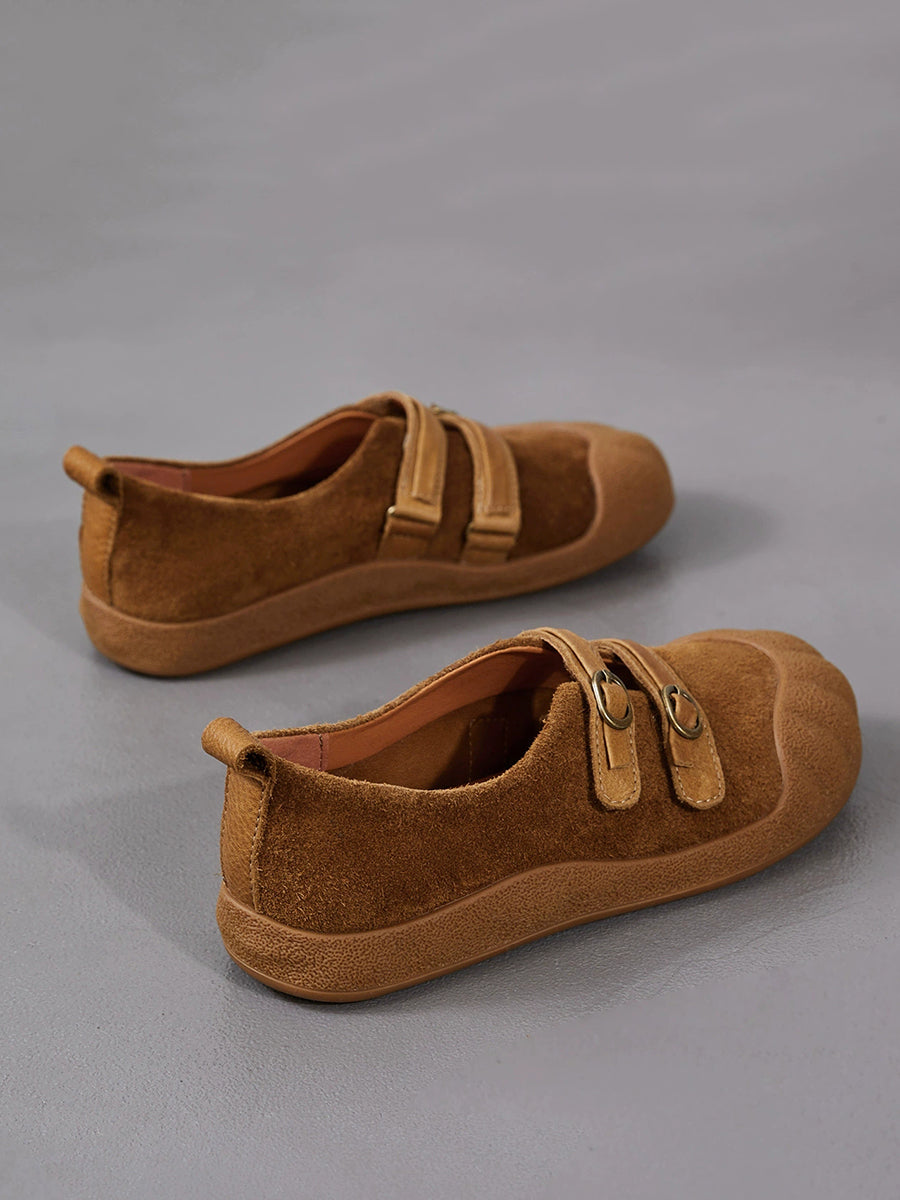 Women Spring Retro Genuine Leather Flat Shoes