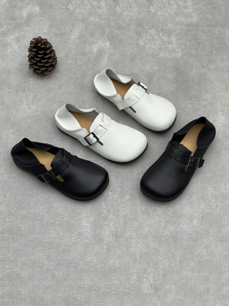Women Autumn Artsy Solid Soft Leather Flat Shoes