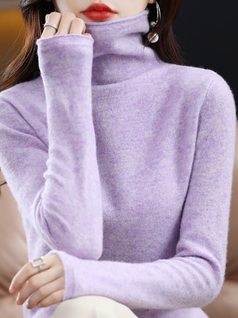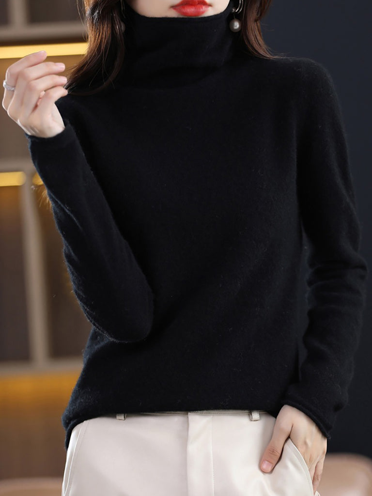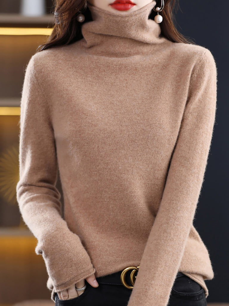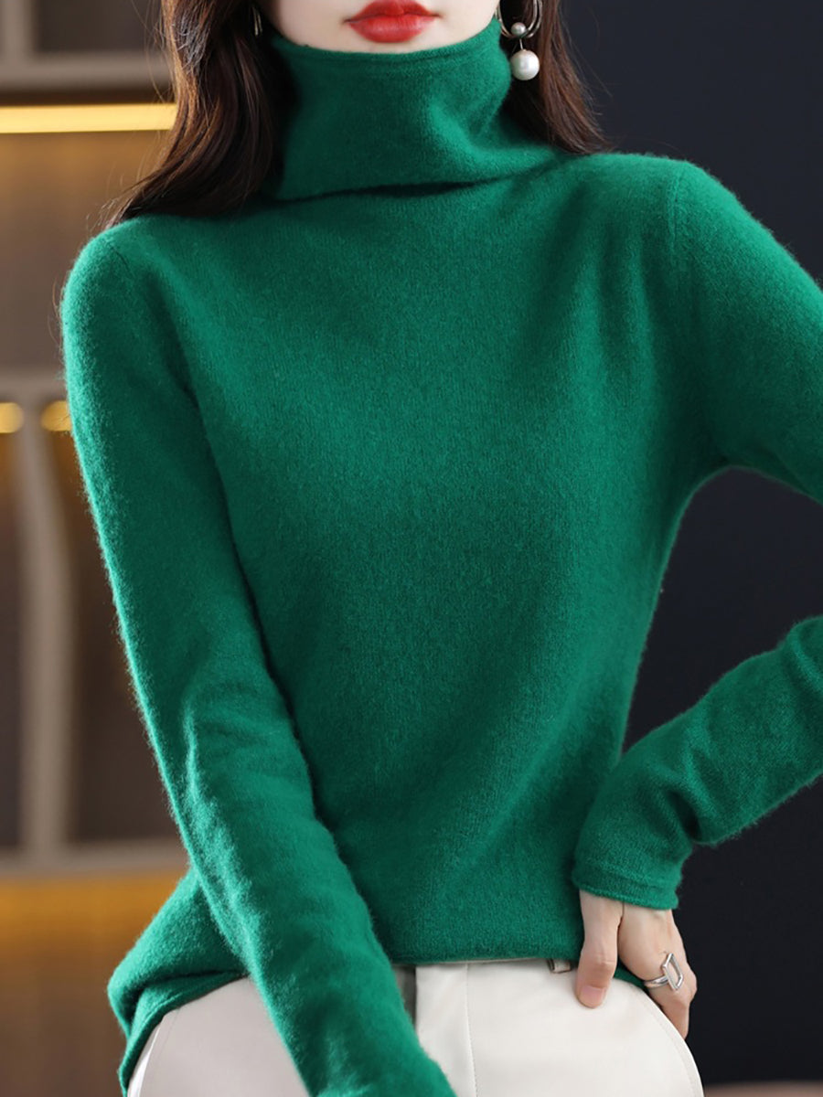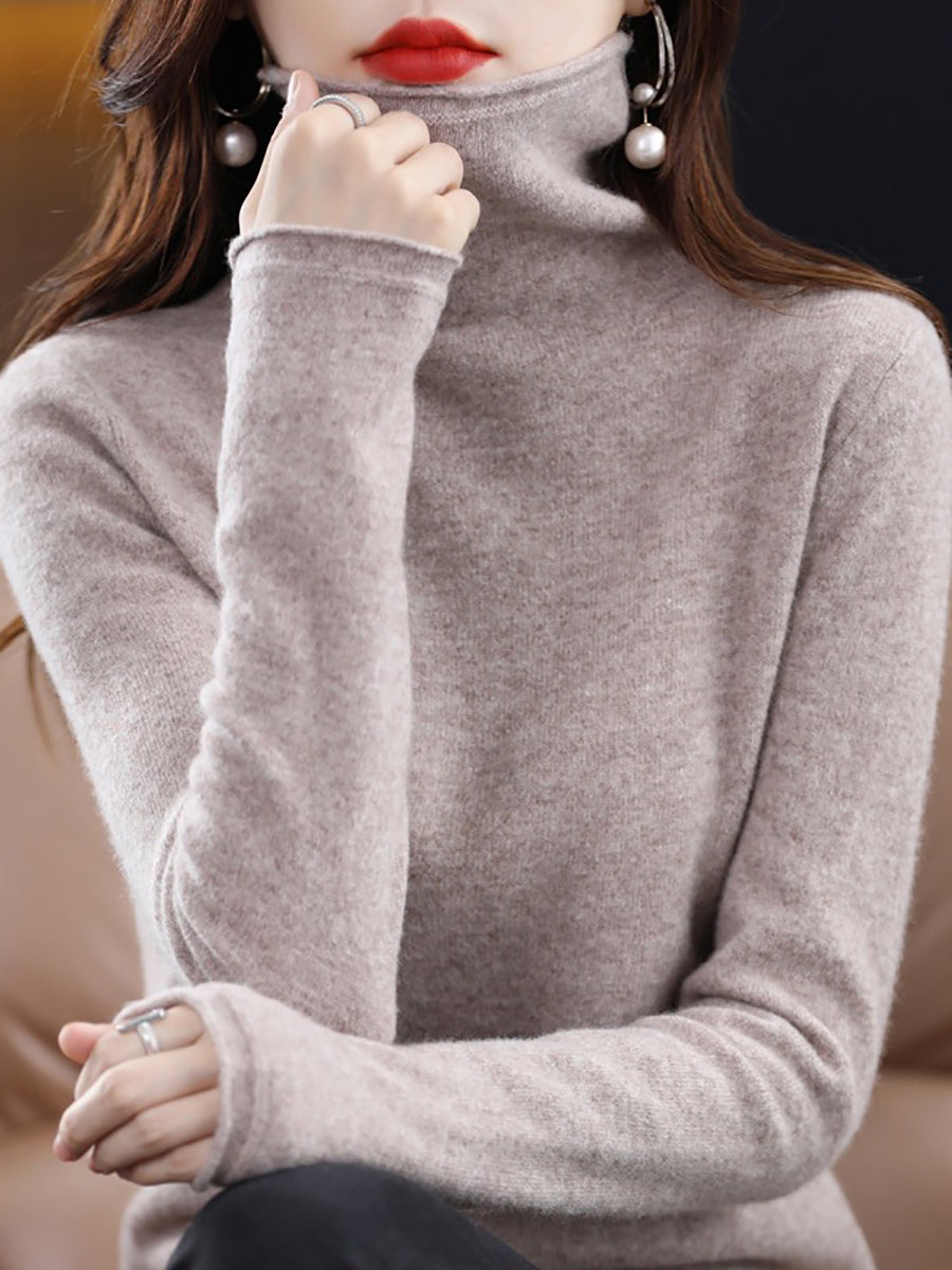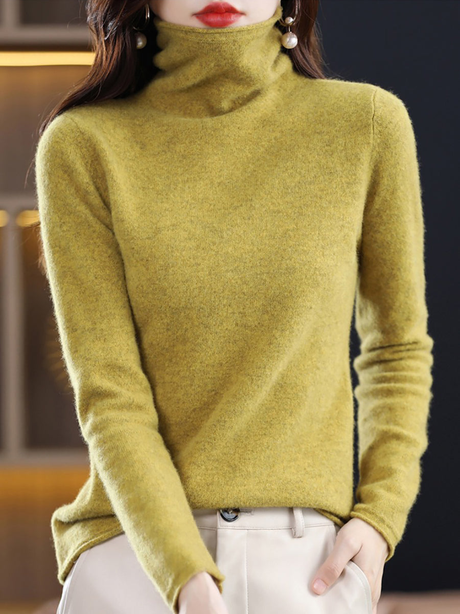 Women Autumn Pure Color Wool Turtleneck Sweater