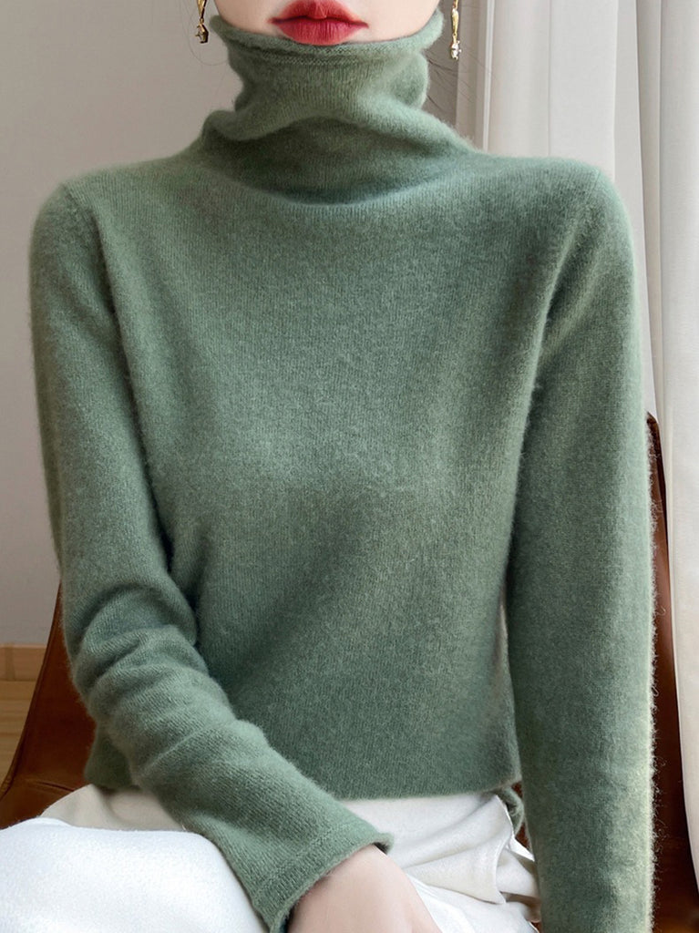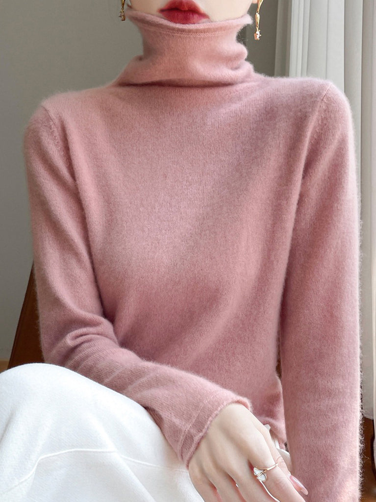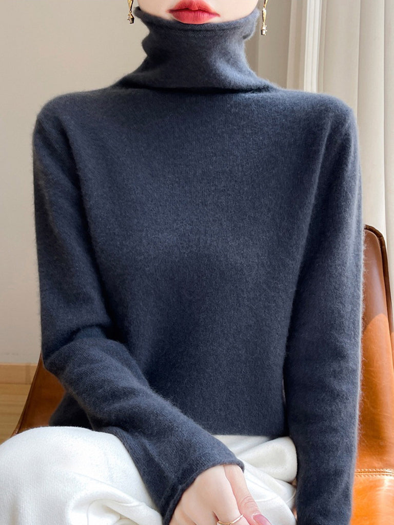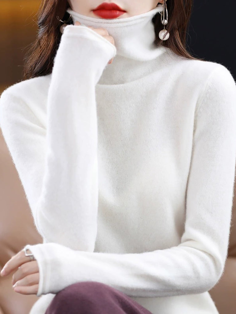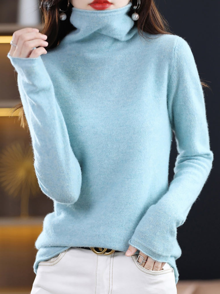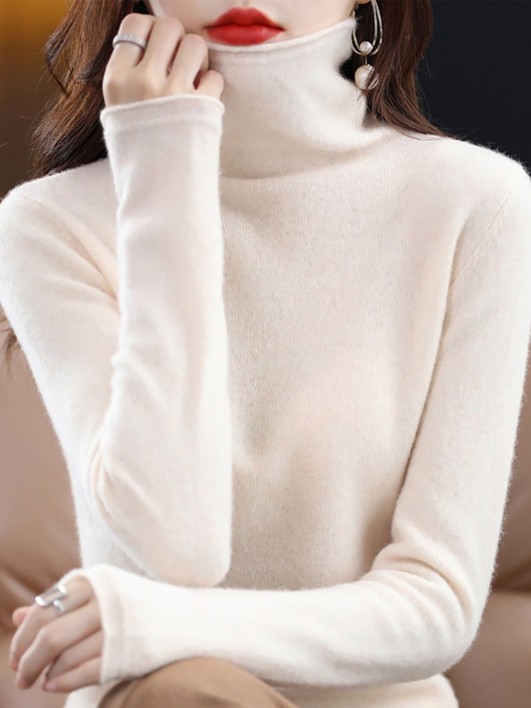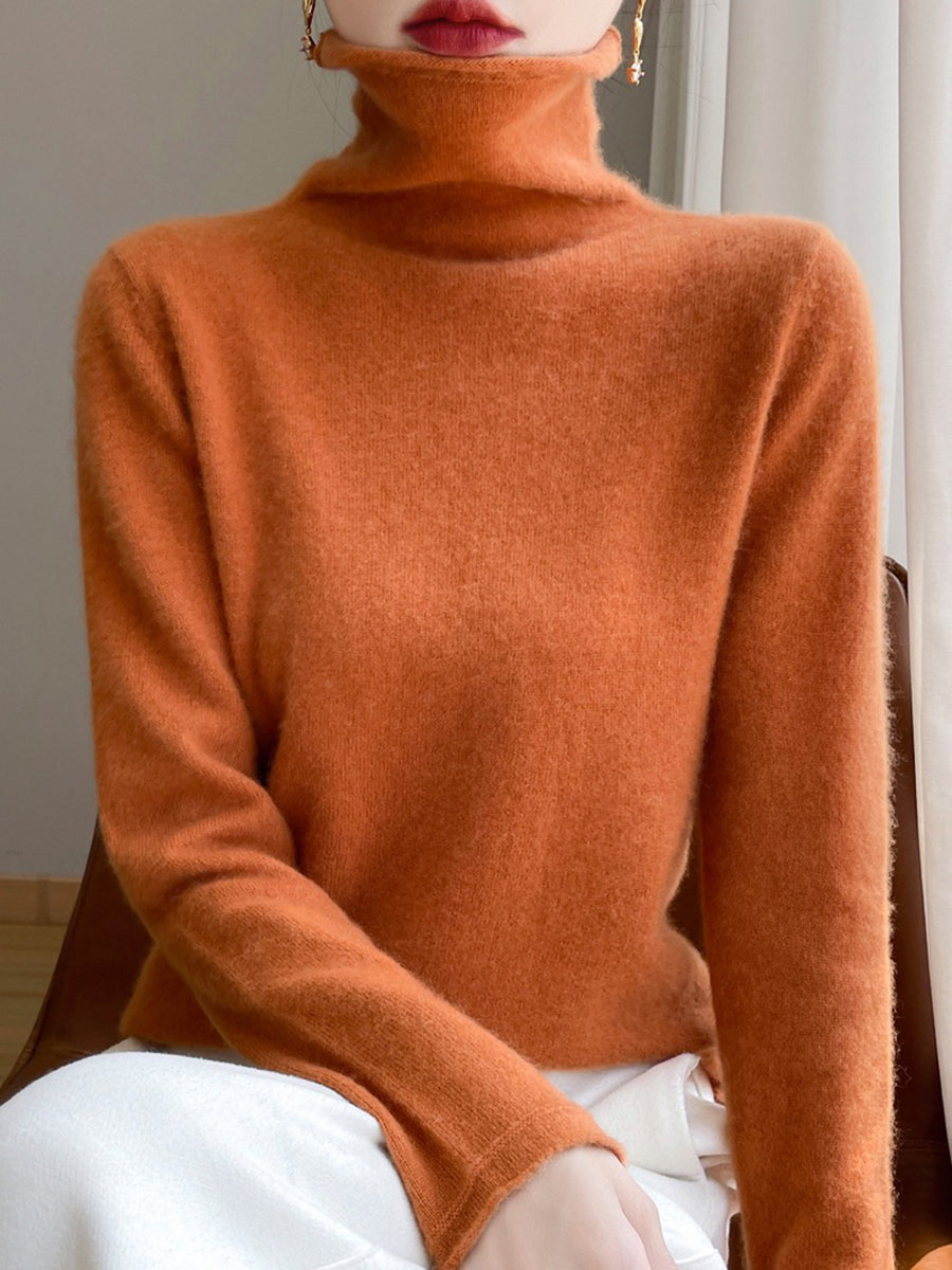 Women Autumn Pure Color Wool Turtleneck Sweater
