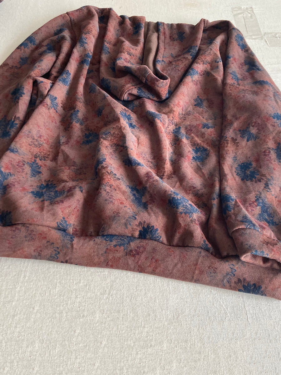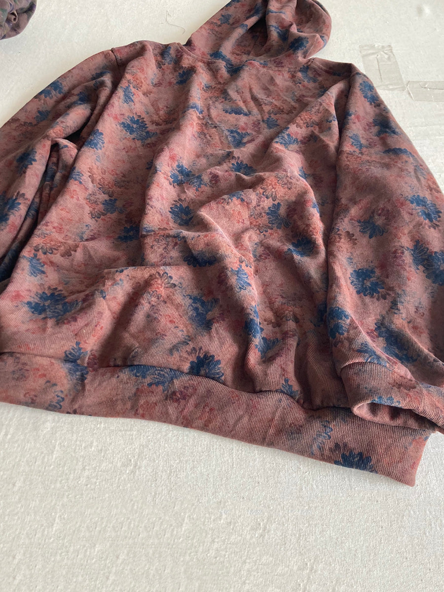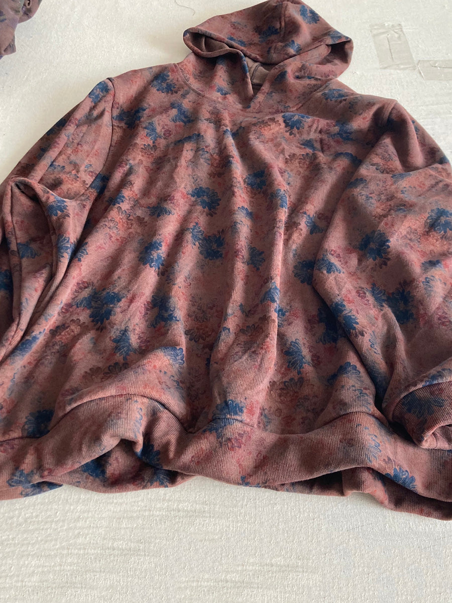 Women Artsy Autumn Flower Cotton Hooded Blouse