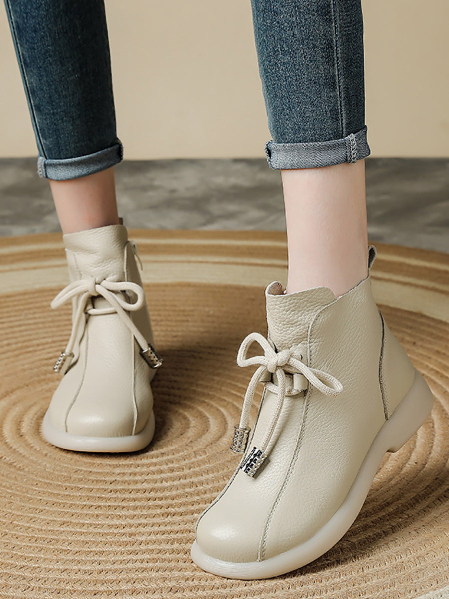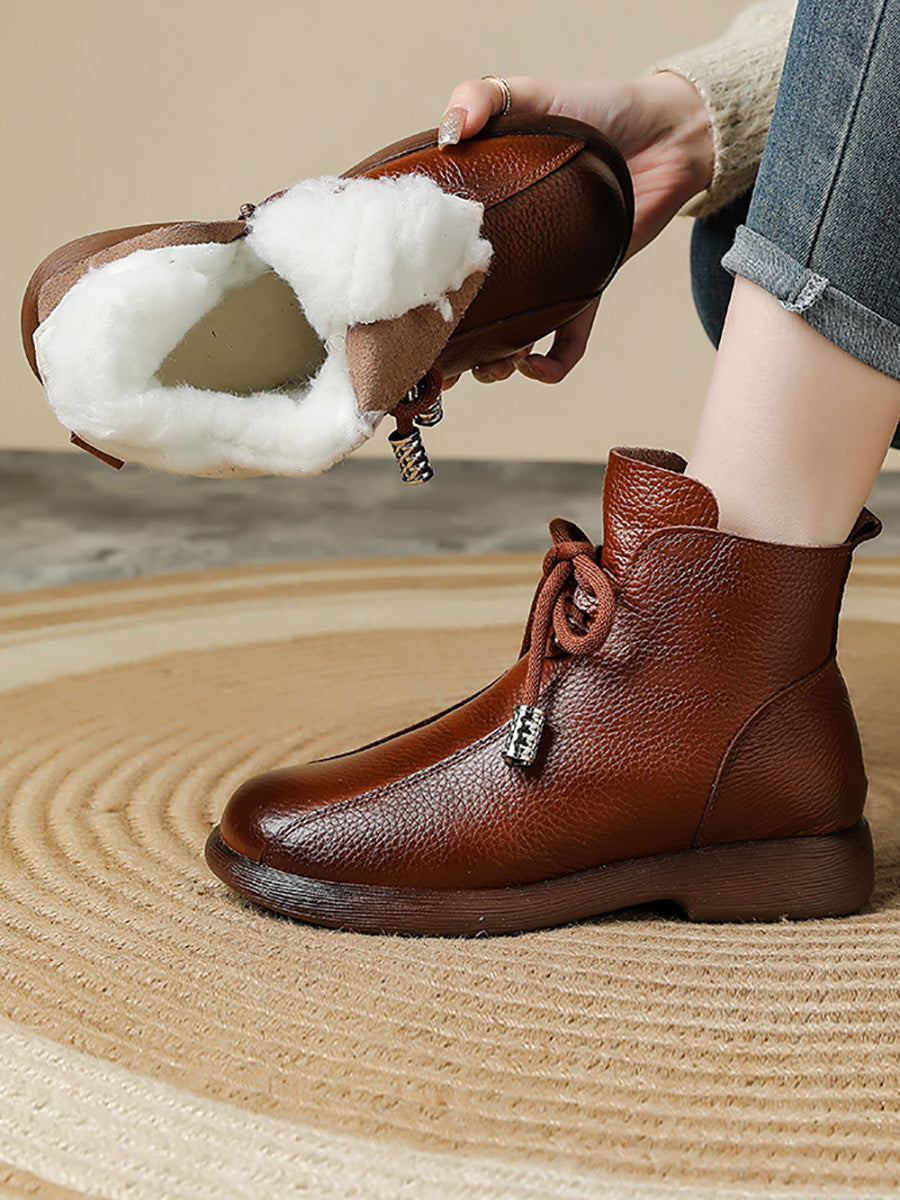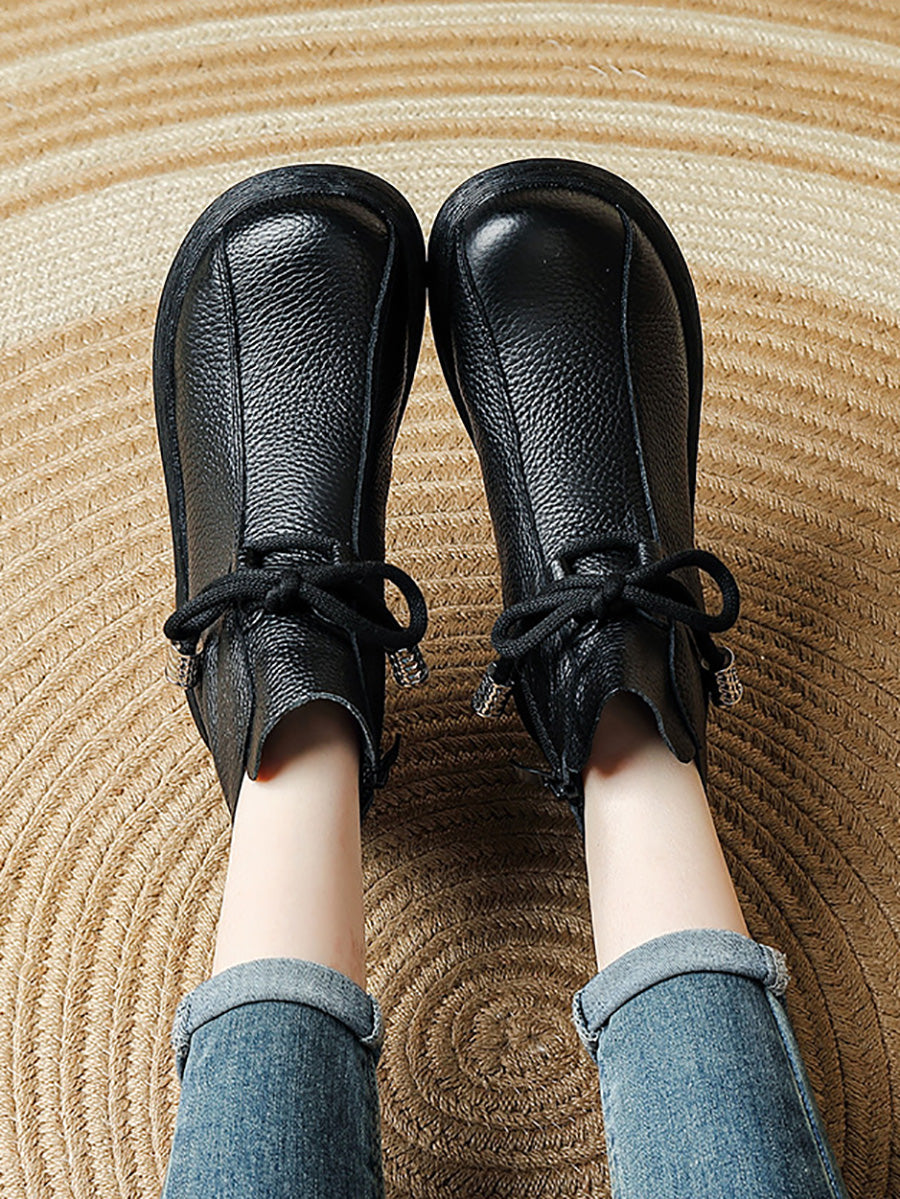Women Retro Winter Genuine Leather Low Heel Ankle Boots