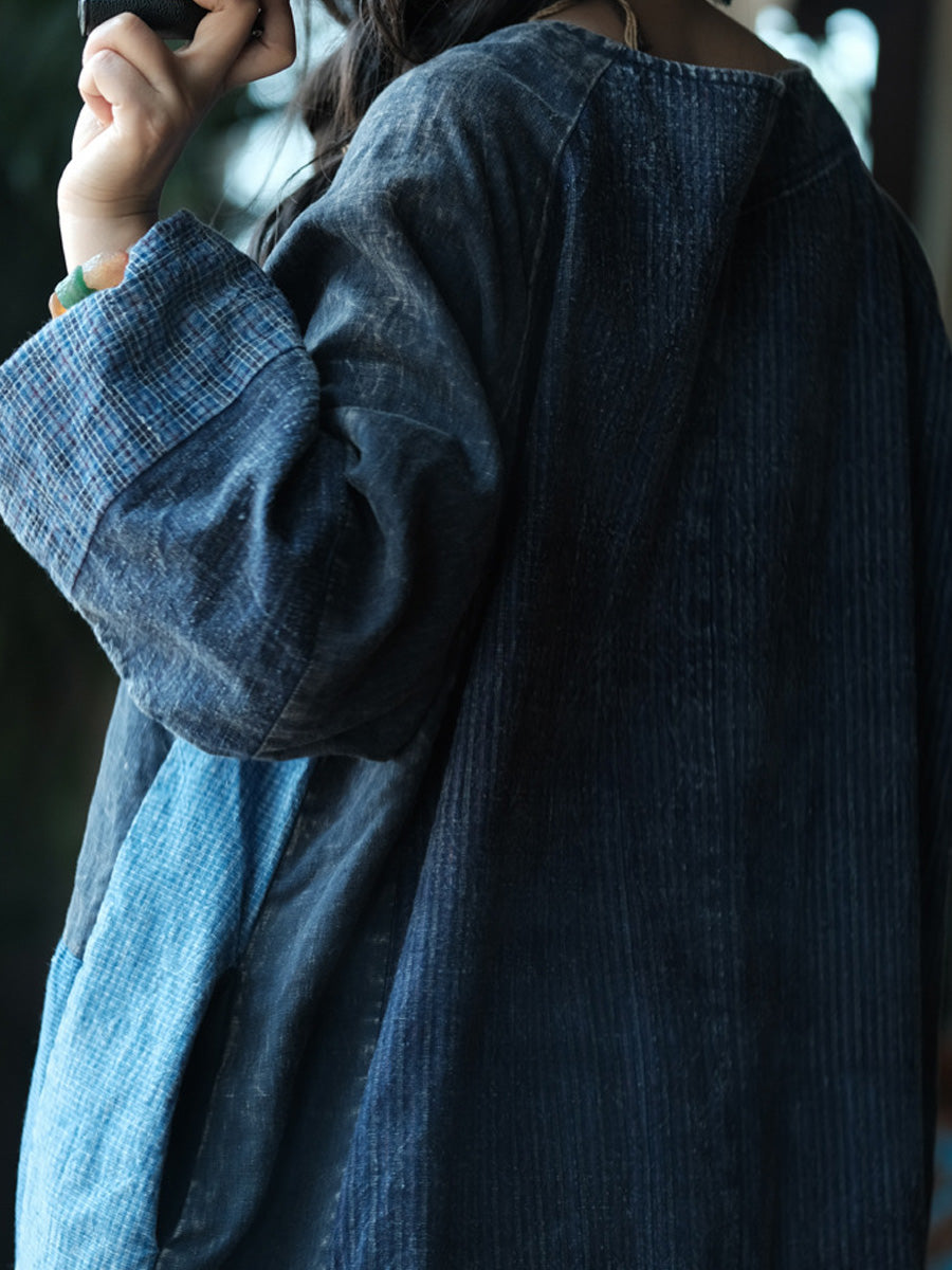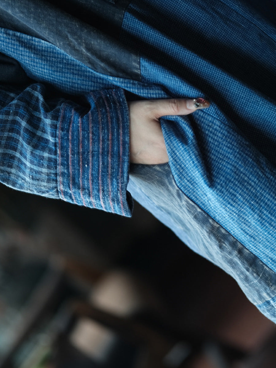 Women Autumn Retro Patchwork O-Neck Cotton Dress