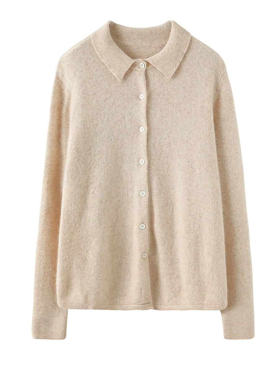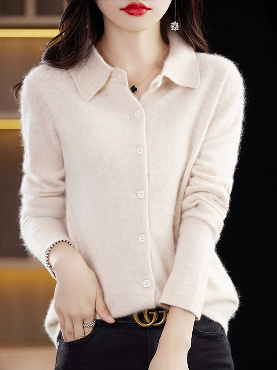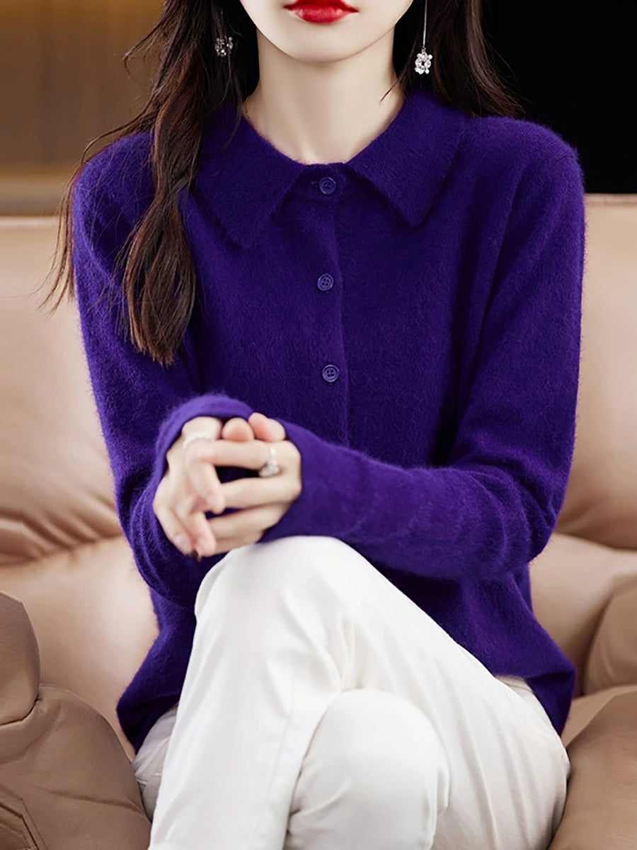 Women Casual Pure Color Turn-down Collar Cardigan Sweater