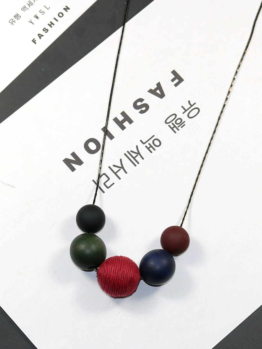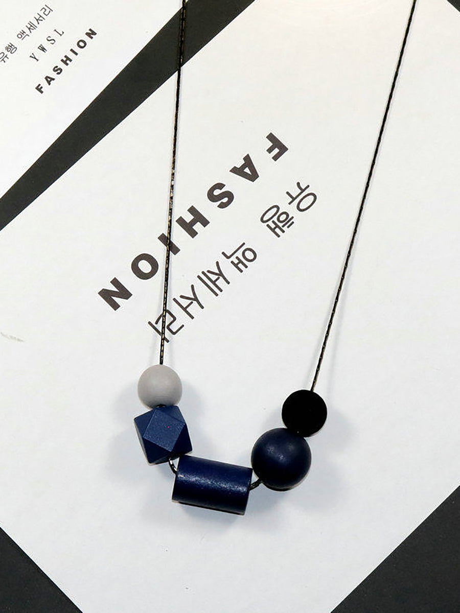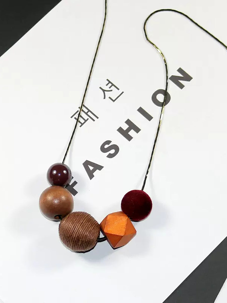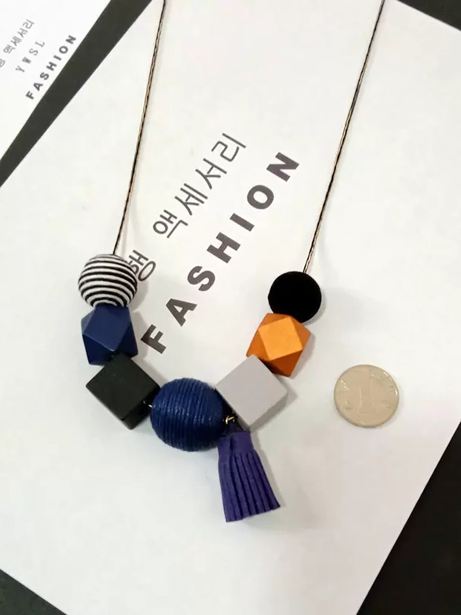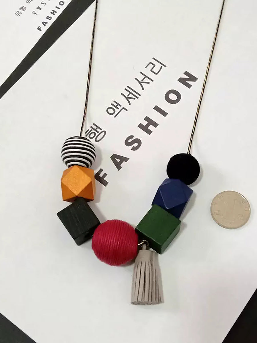Women Artsy Colorful Geometric Wood Necklace