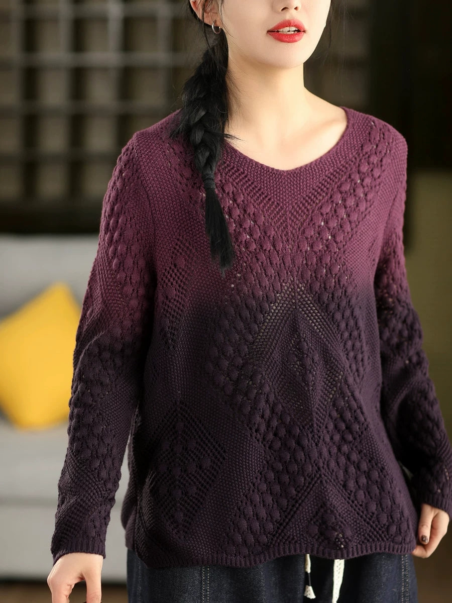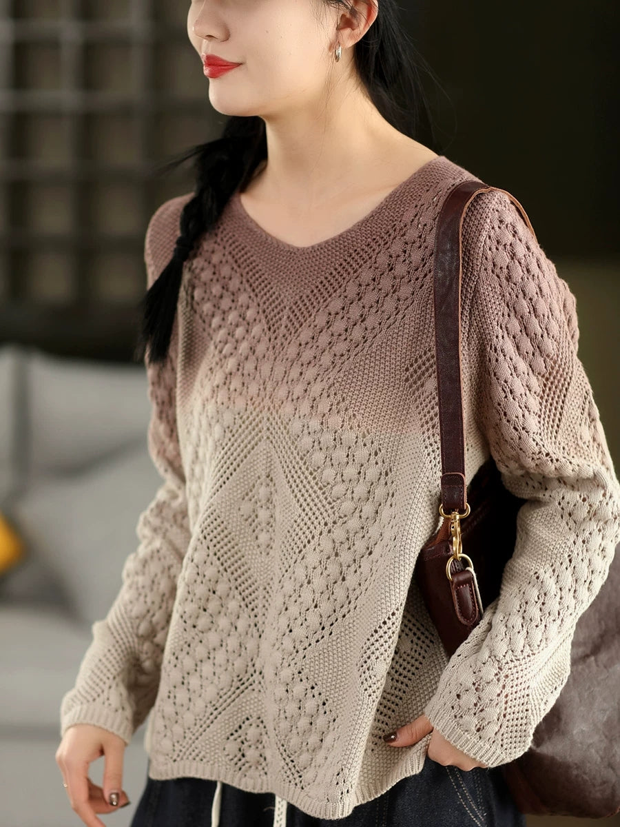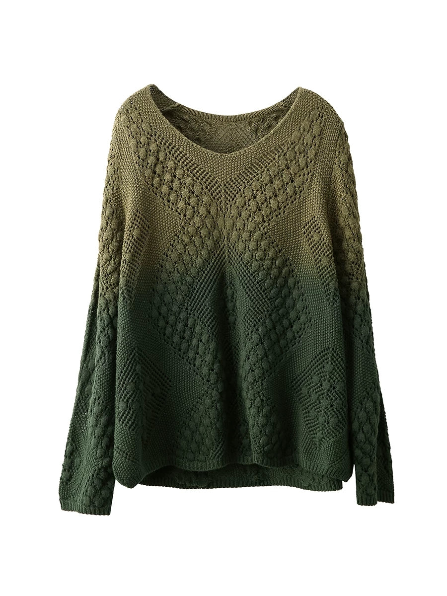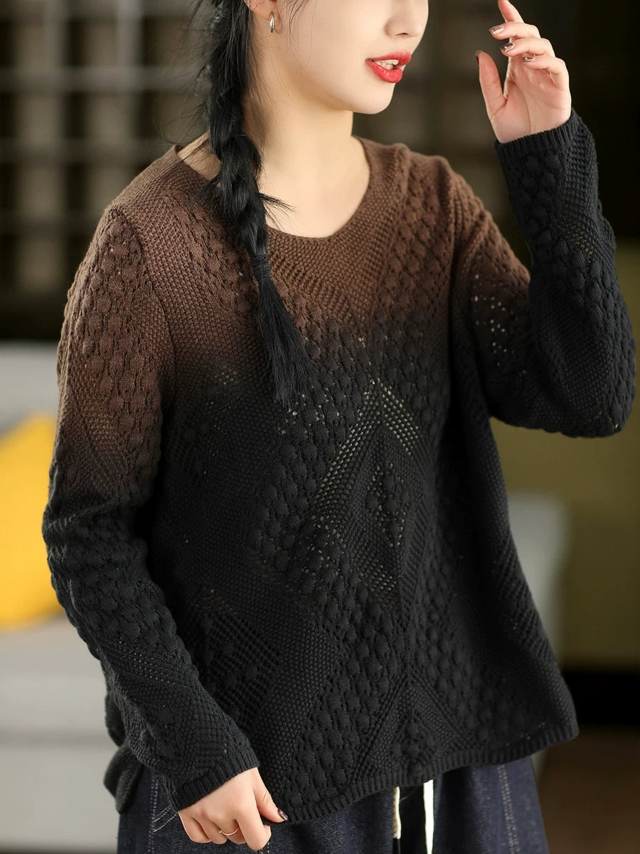 Women Artsy Spring Gradual Color O-Neck Sweater