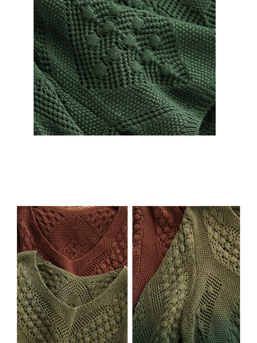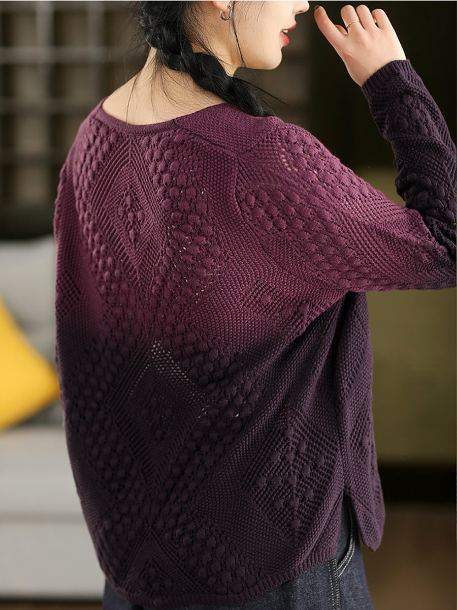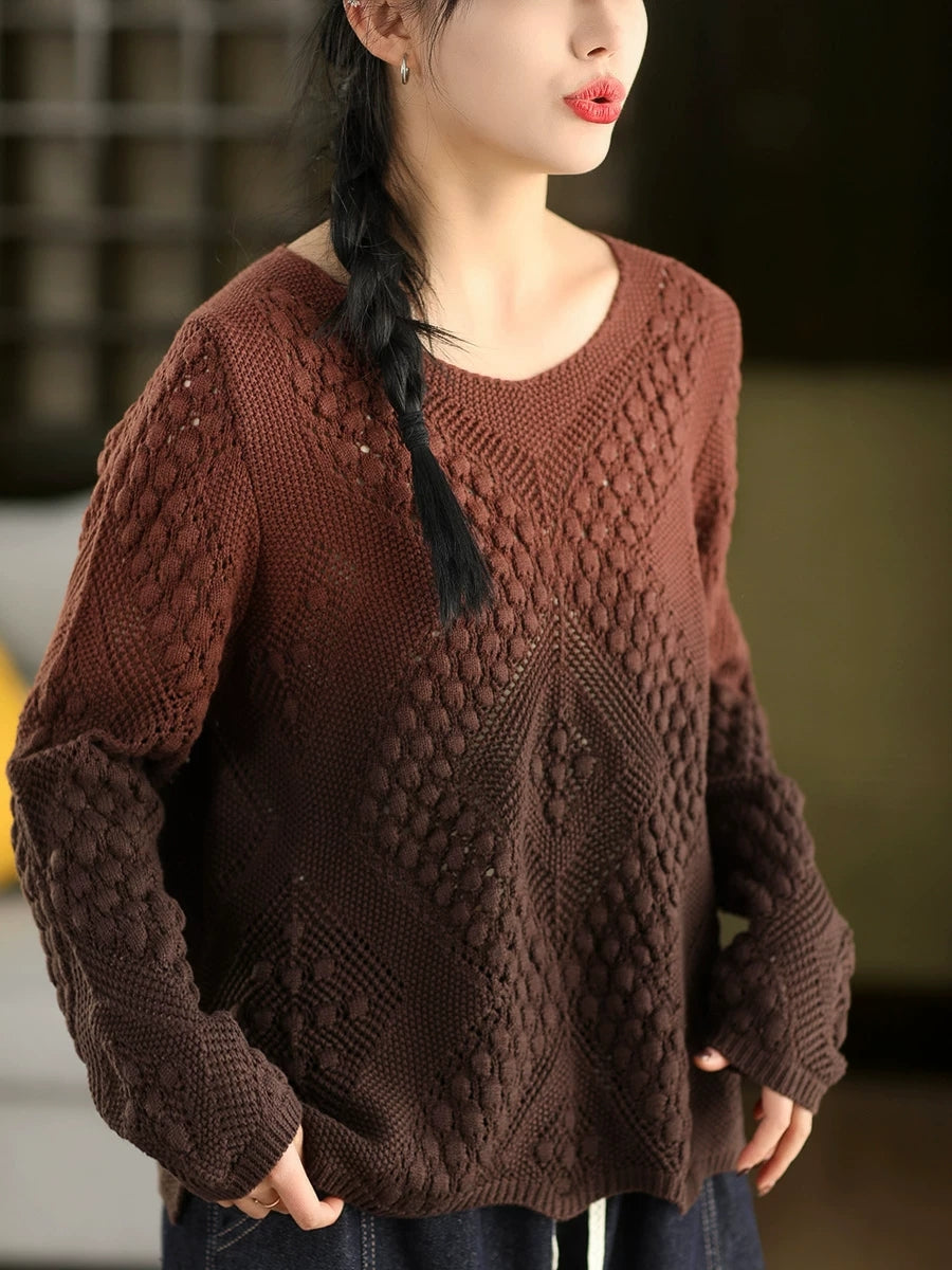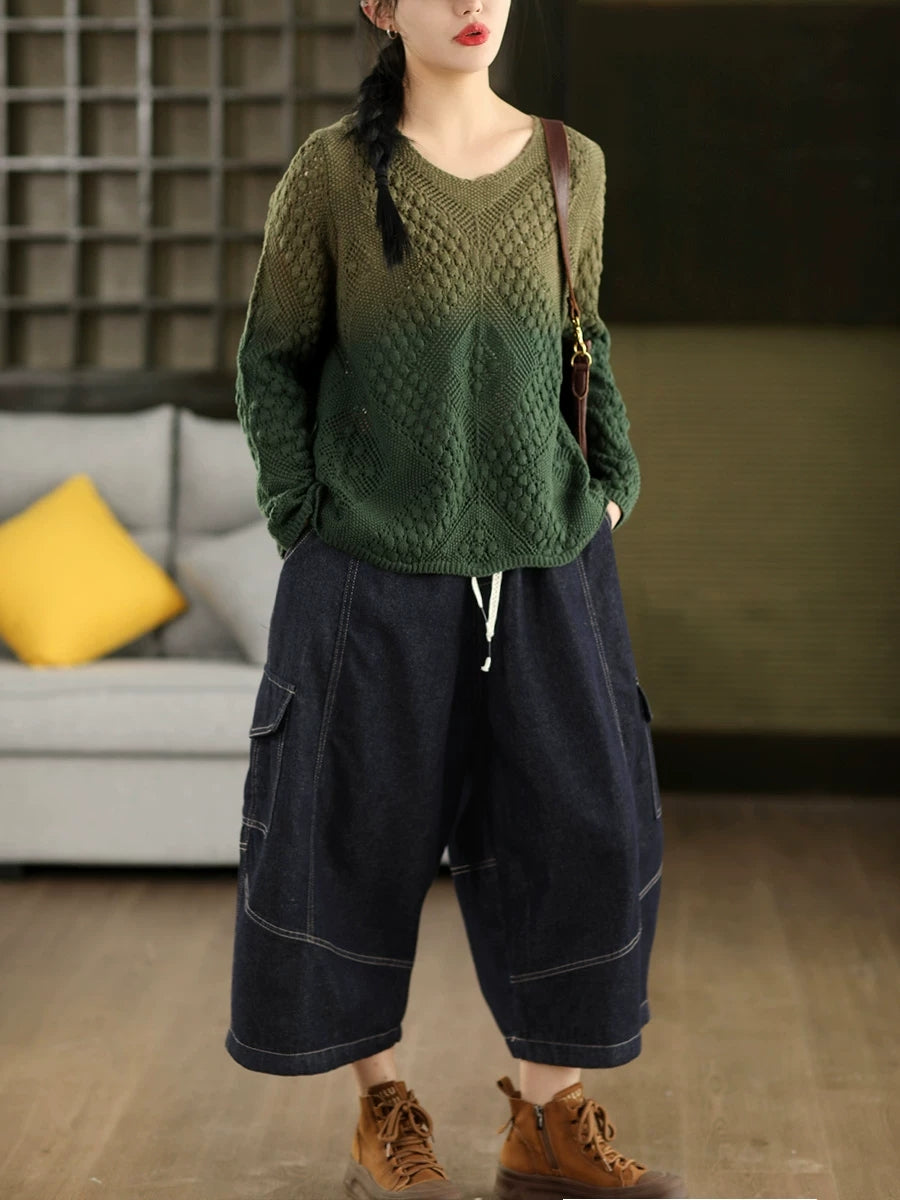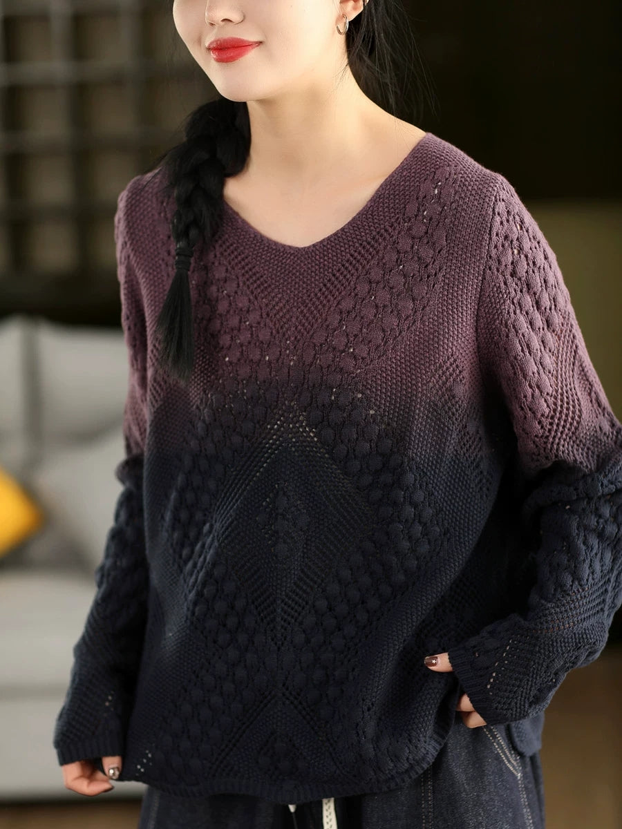 Women Artsy Spring Gradual Color O-Neck Sweater