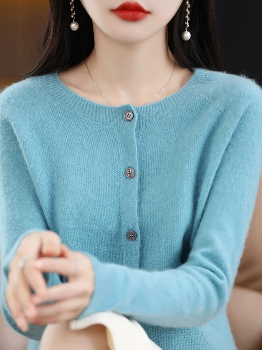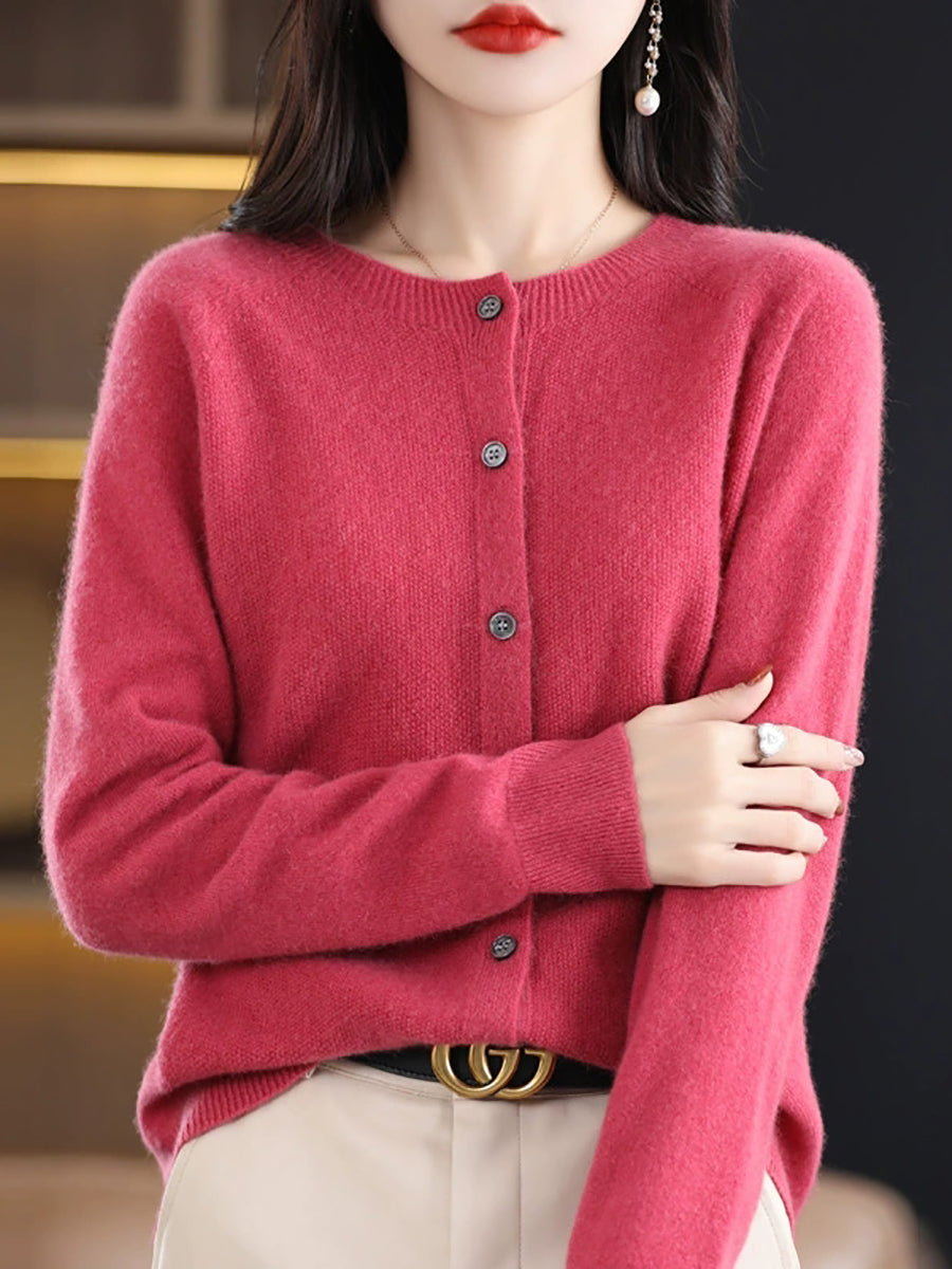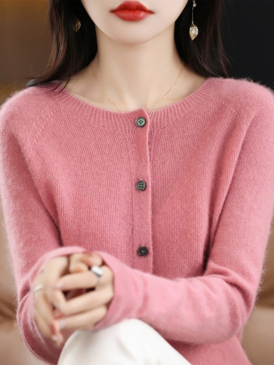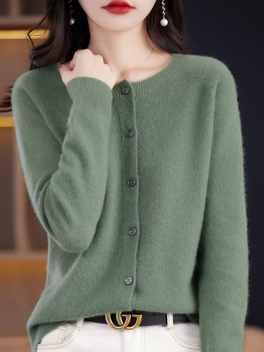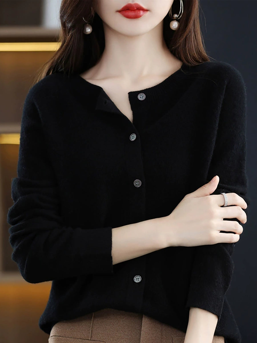 Women Spring Casual Pure Color O-Neck Sweater