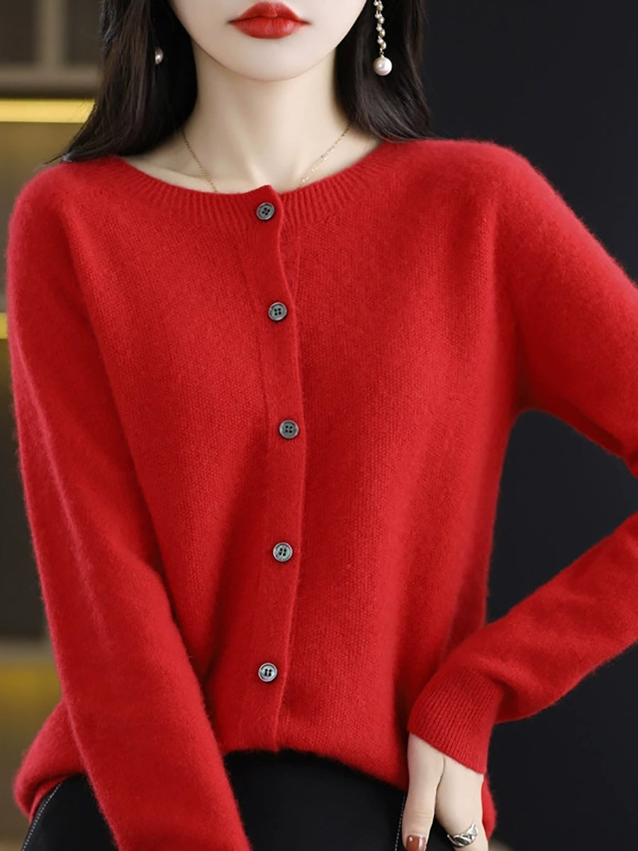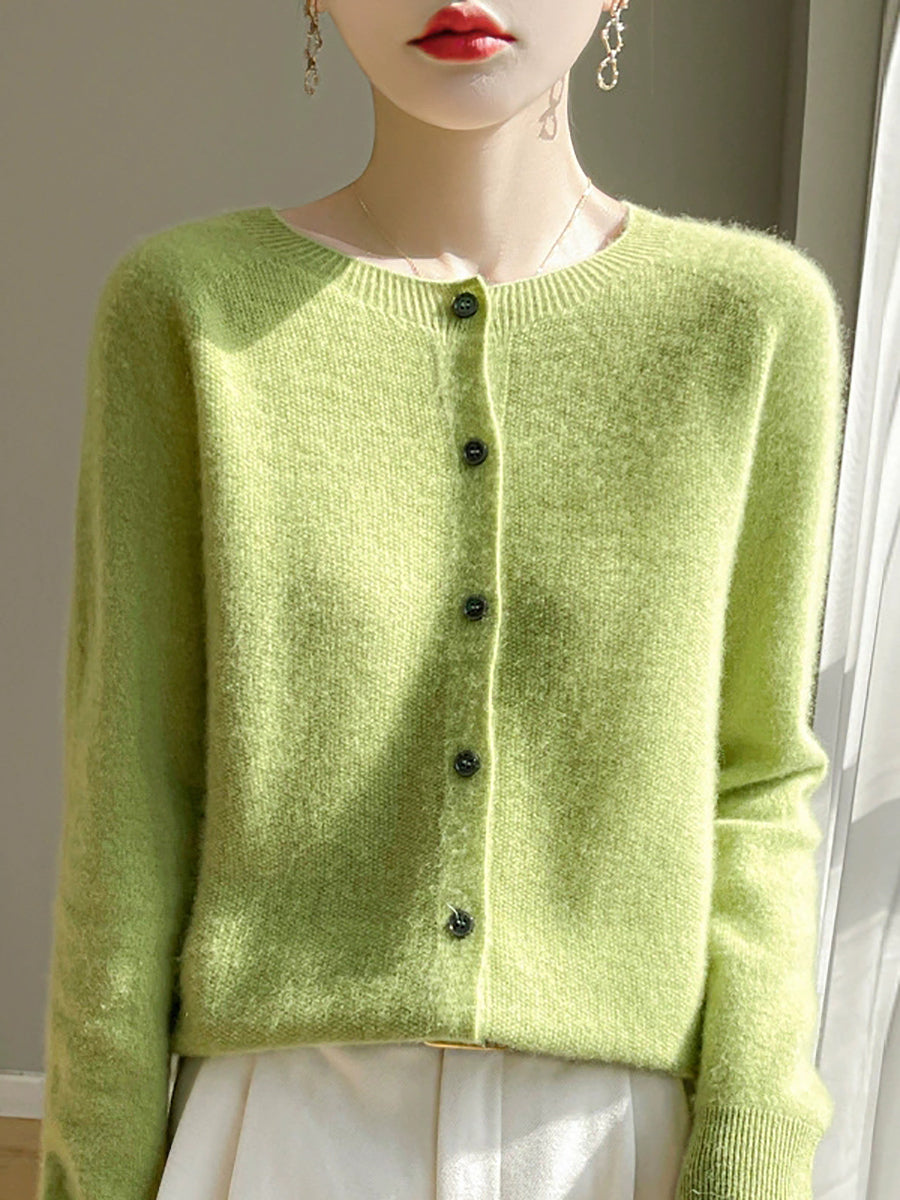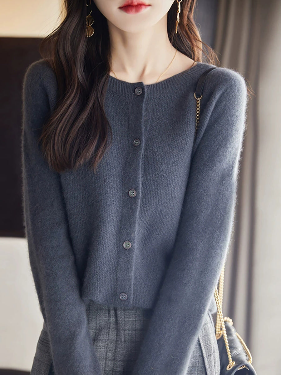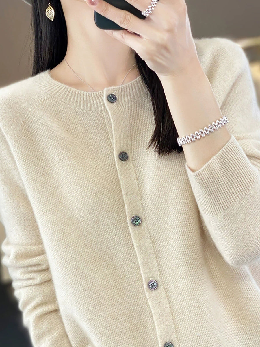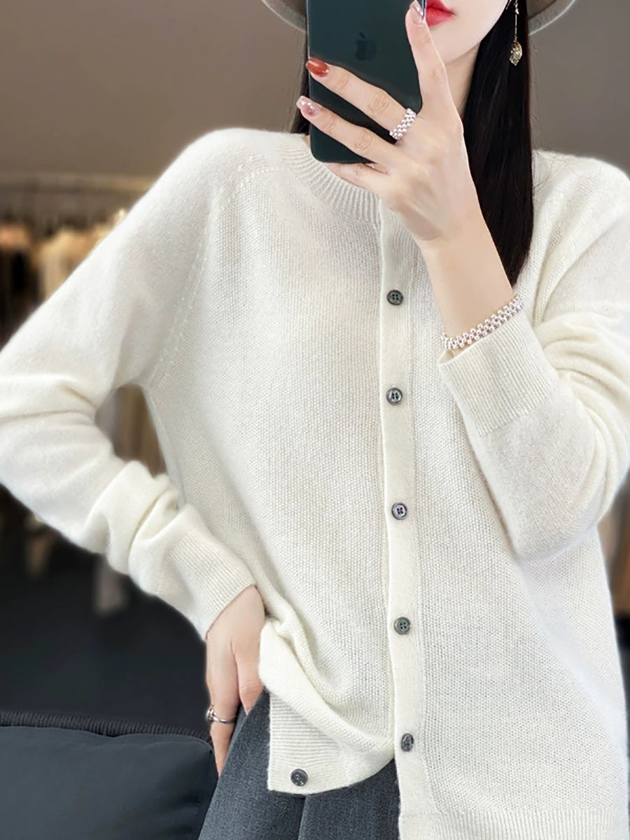 Women Spring Casual Pure Color O-Neck Sweater