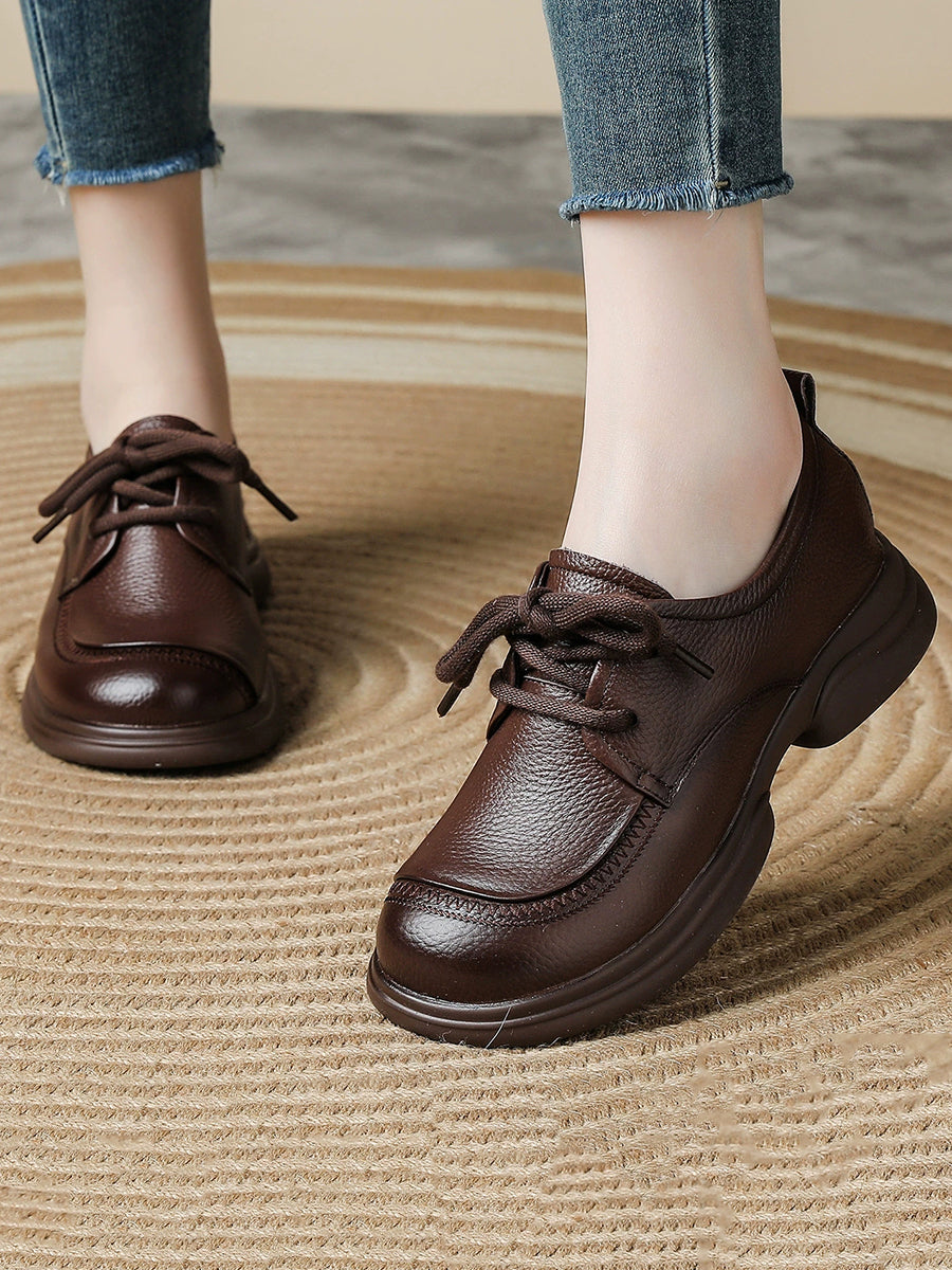 Women Spring Retro Genuine Leather Low Heel Shoes