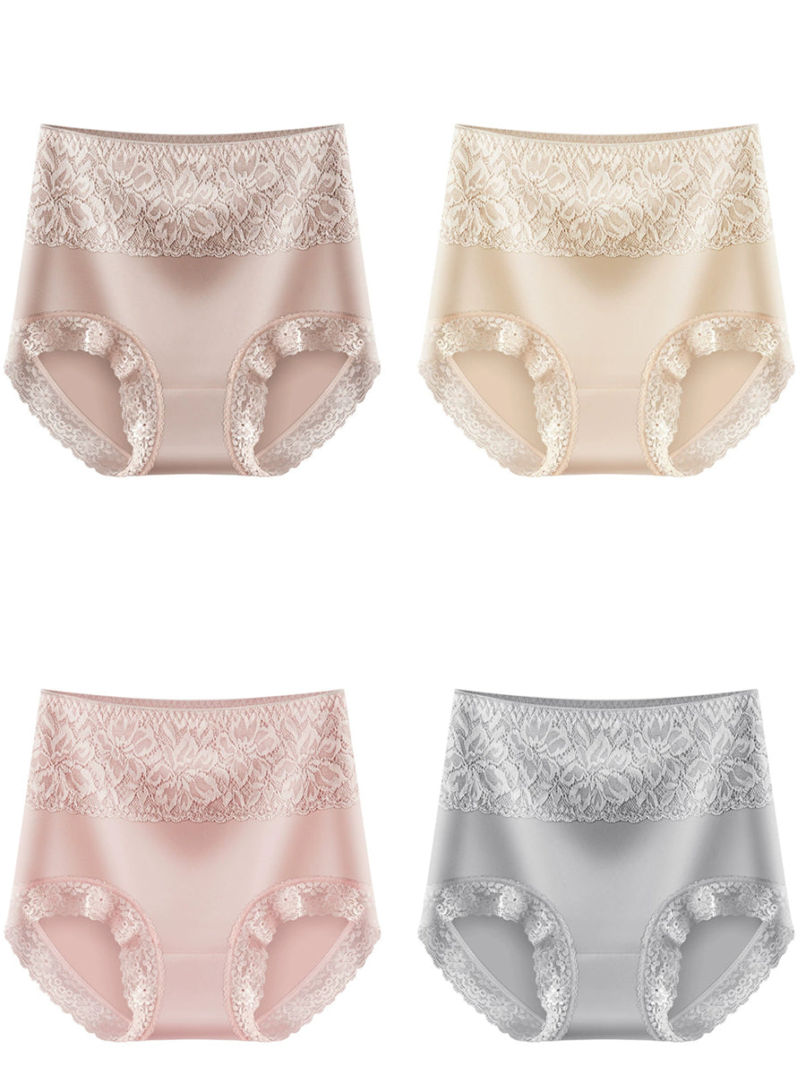 4 Pieces Women Artsy Lace High Waist Underwear