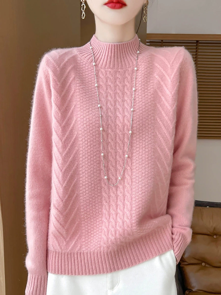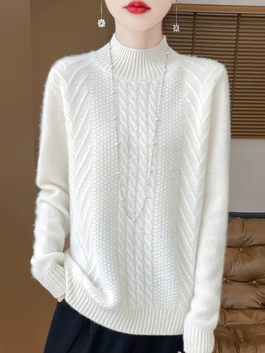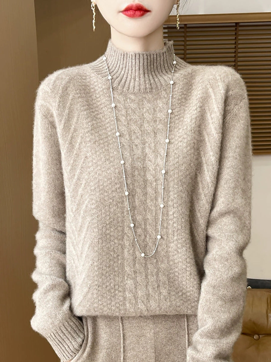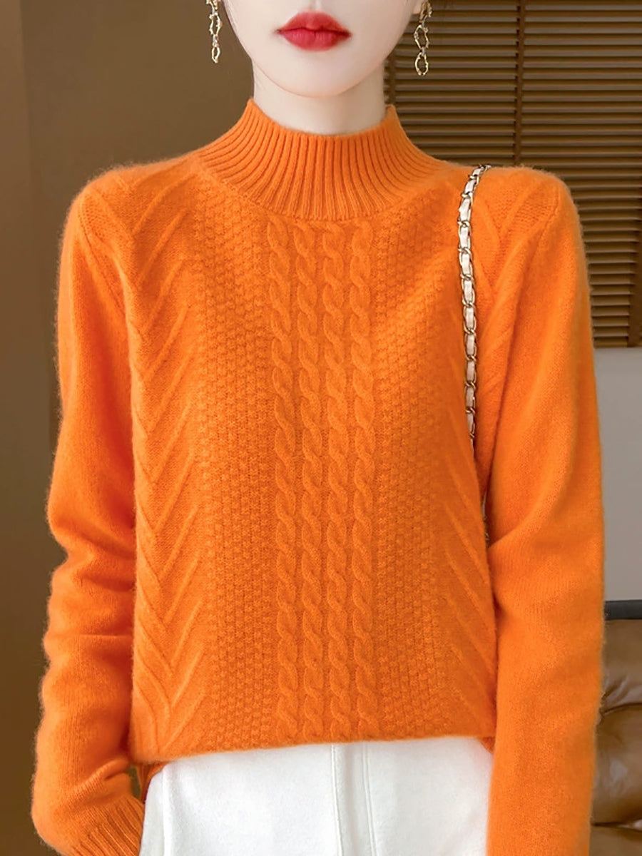Women Casual Spring Cable-knit Half-turtleneck Sweater