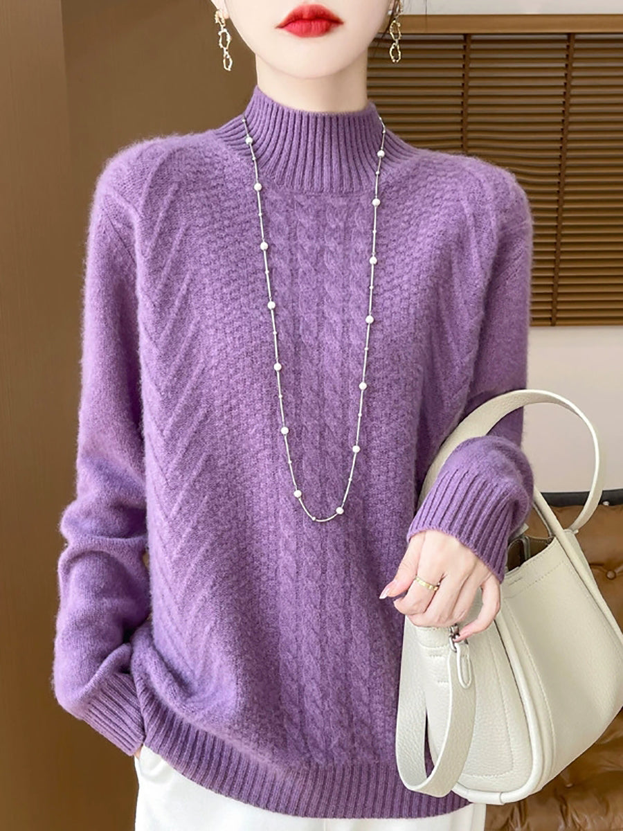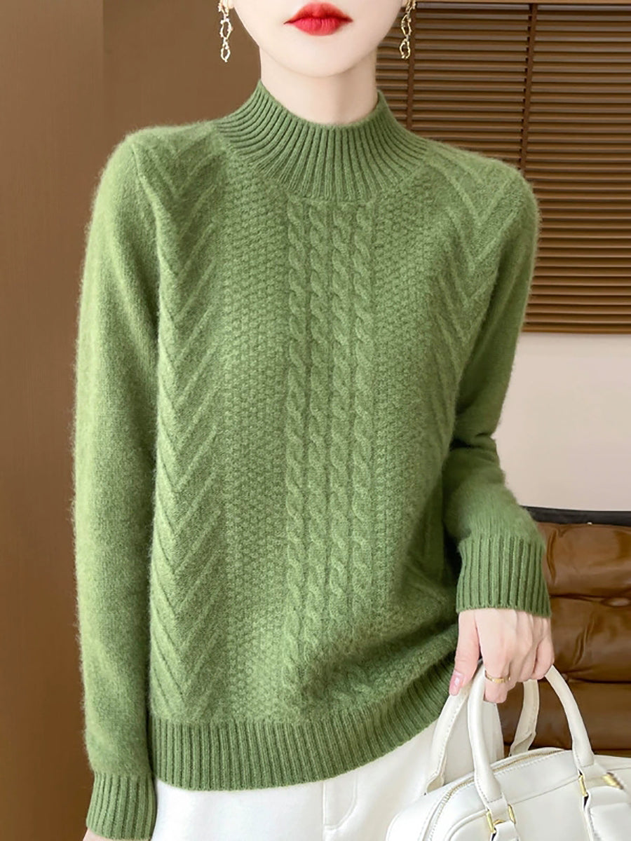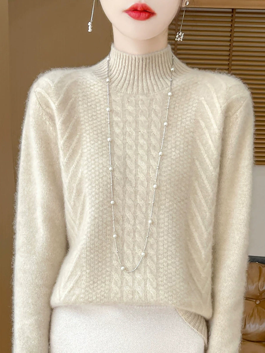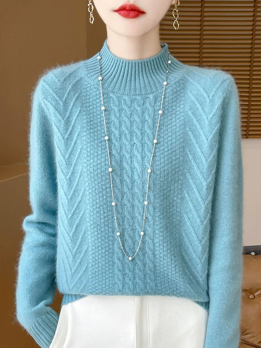 Women Casual Spring Cable-knit Half-turtleneck Sweater