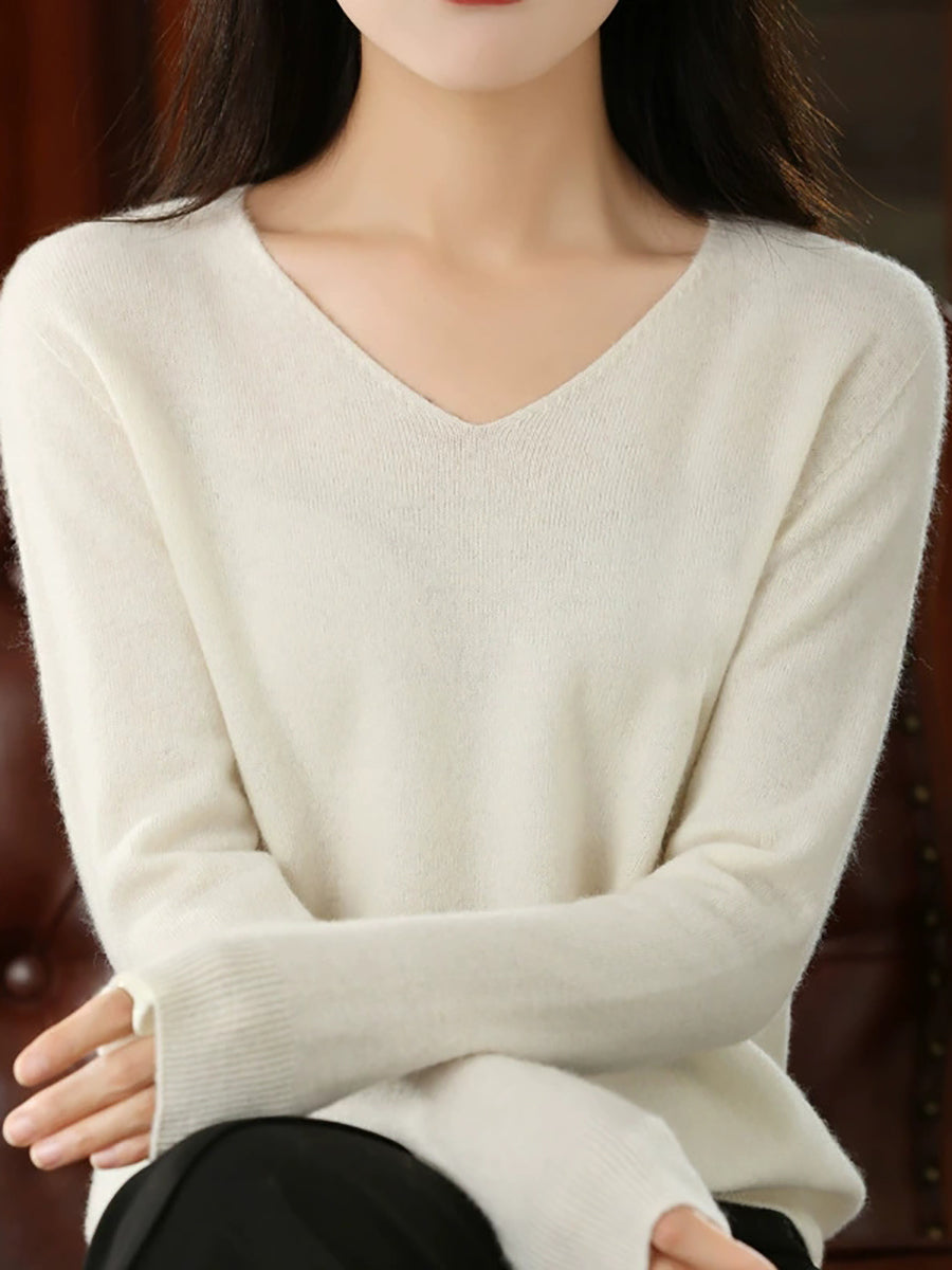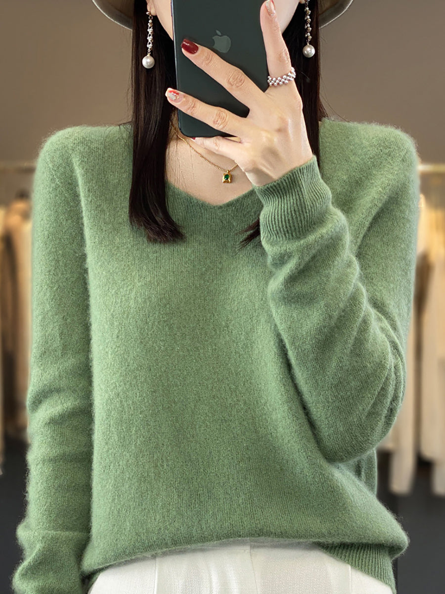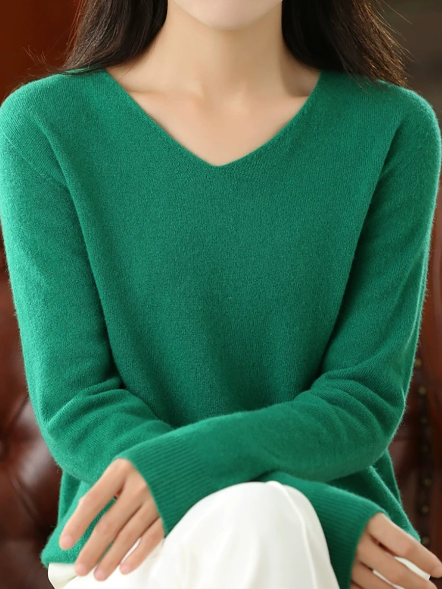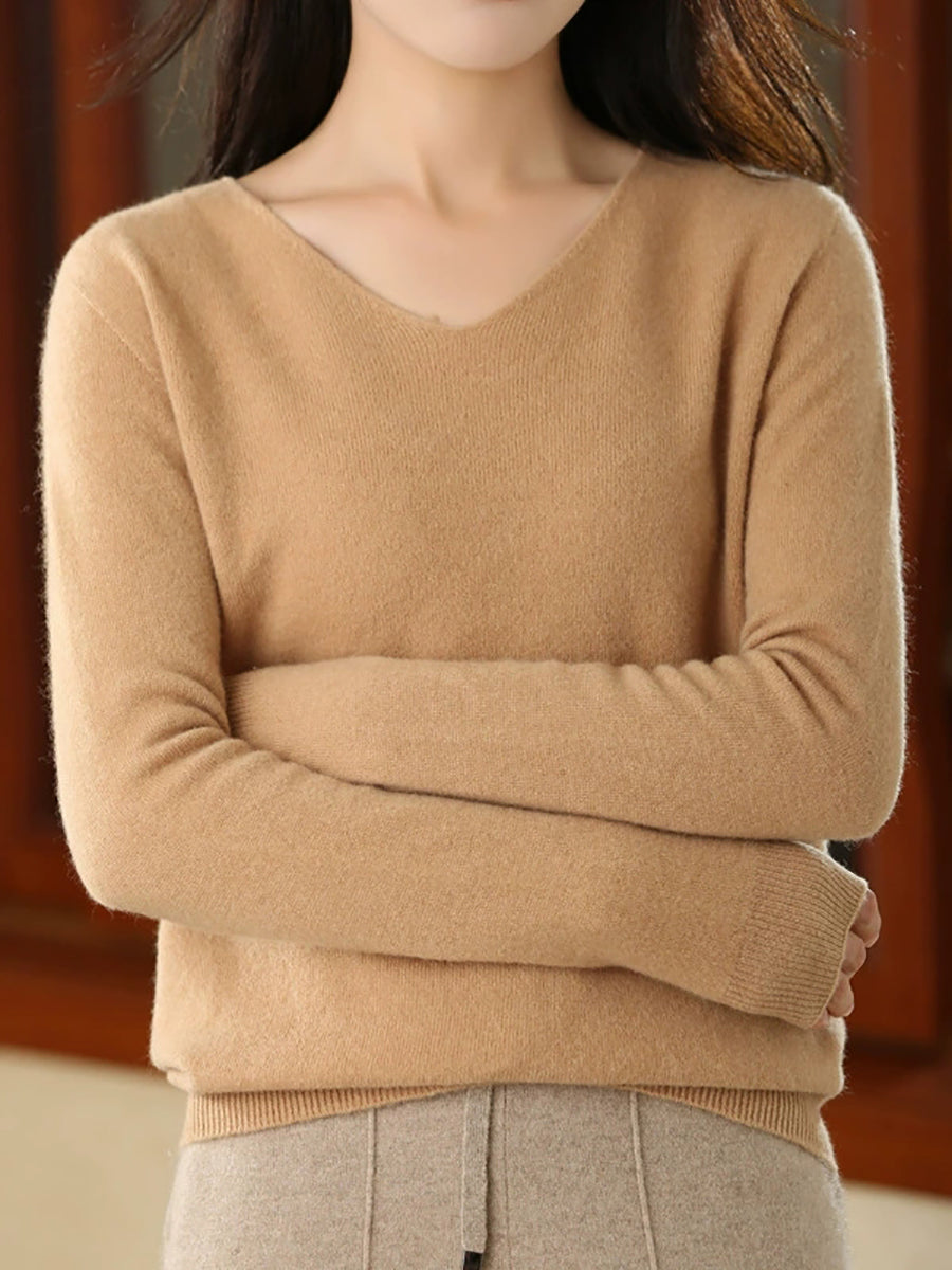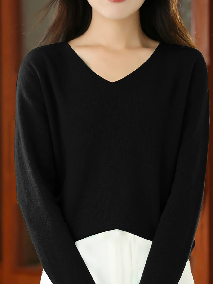 Women Casual Spring Pure Color V-Neck Sweater