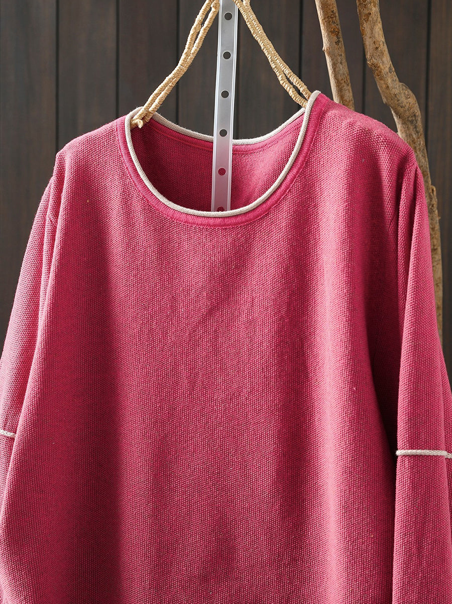 Women Spring Casual Pure Color Cotton Blouse