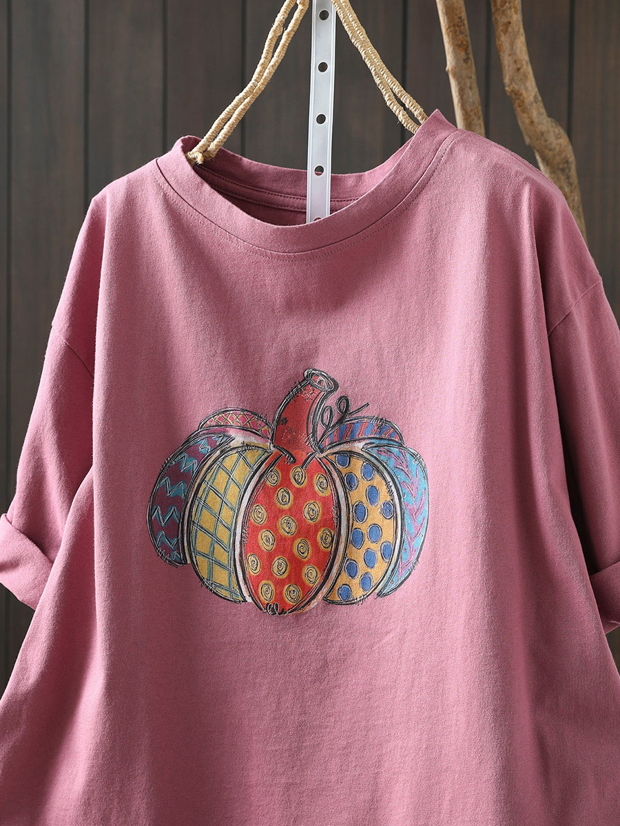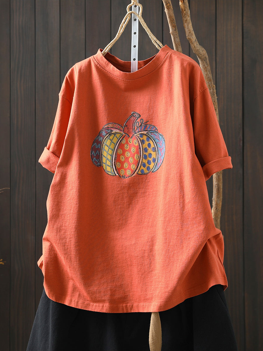 Women Summer Artsy Pumpkin Cotton Shirt