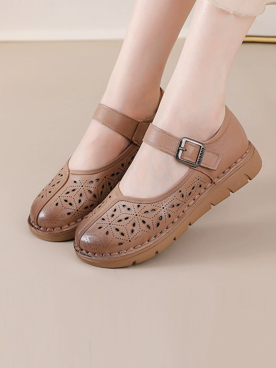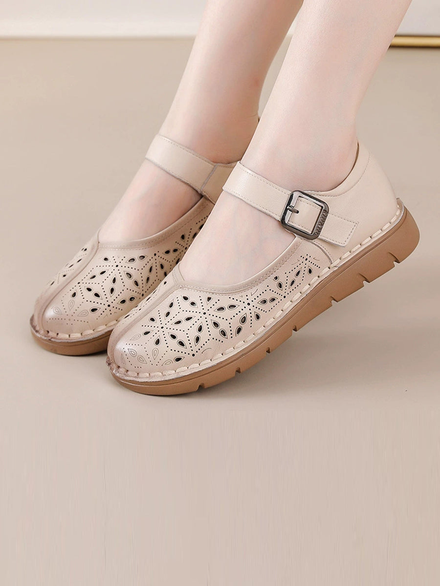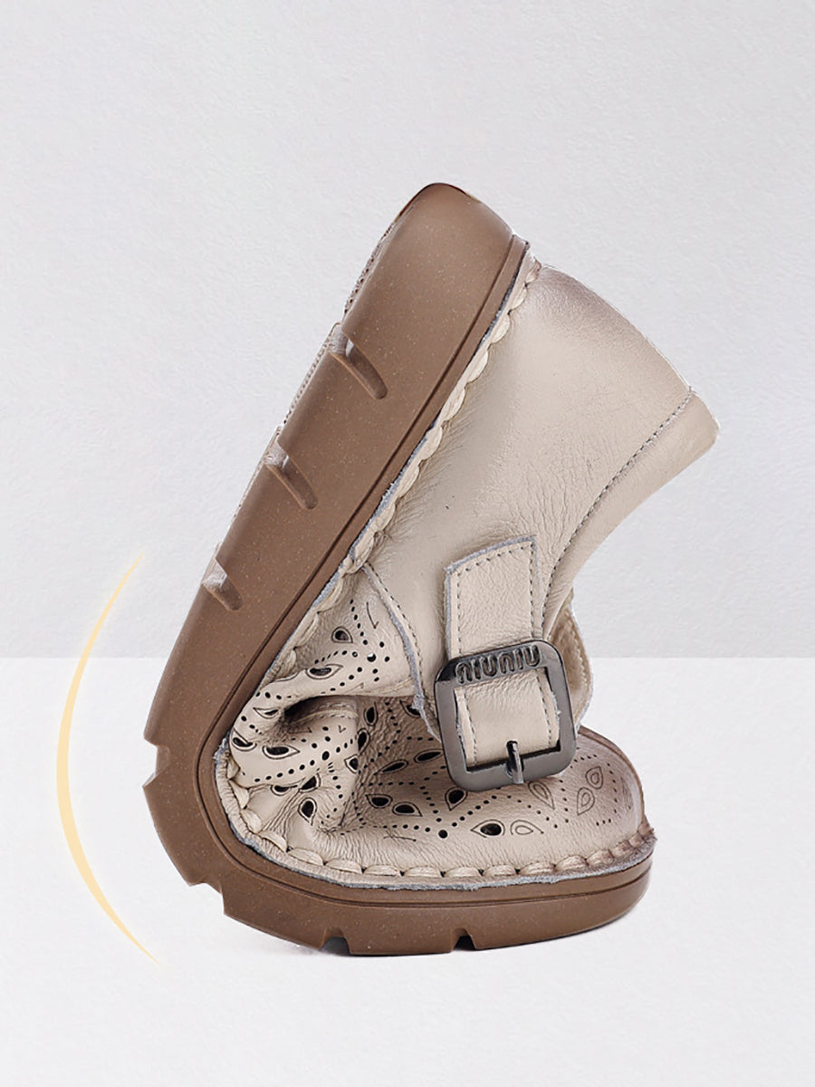 Women Summer Genuine Leather Spliced Flat Shoes