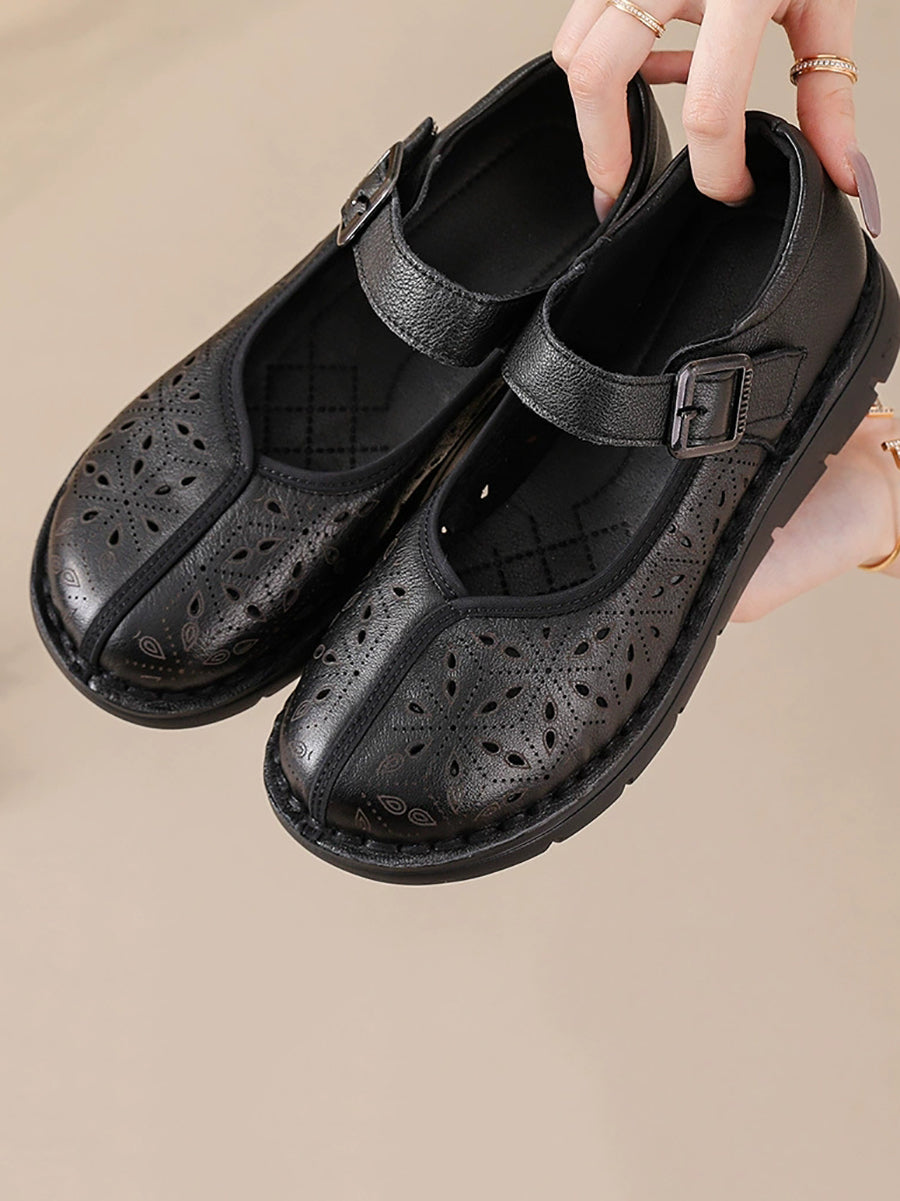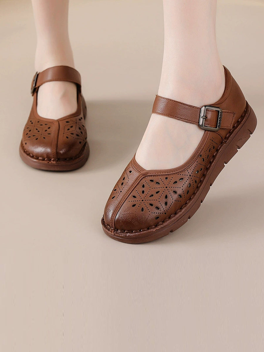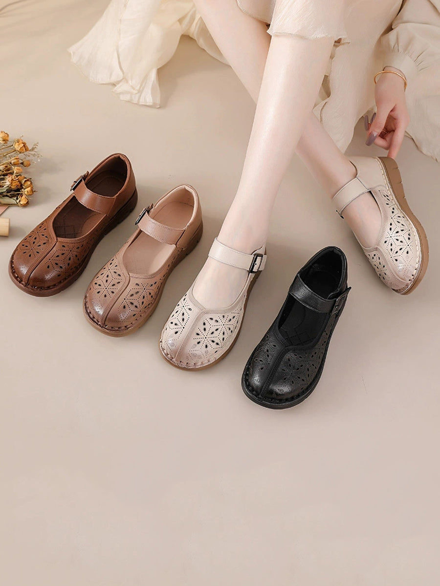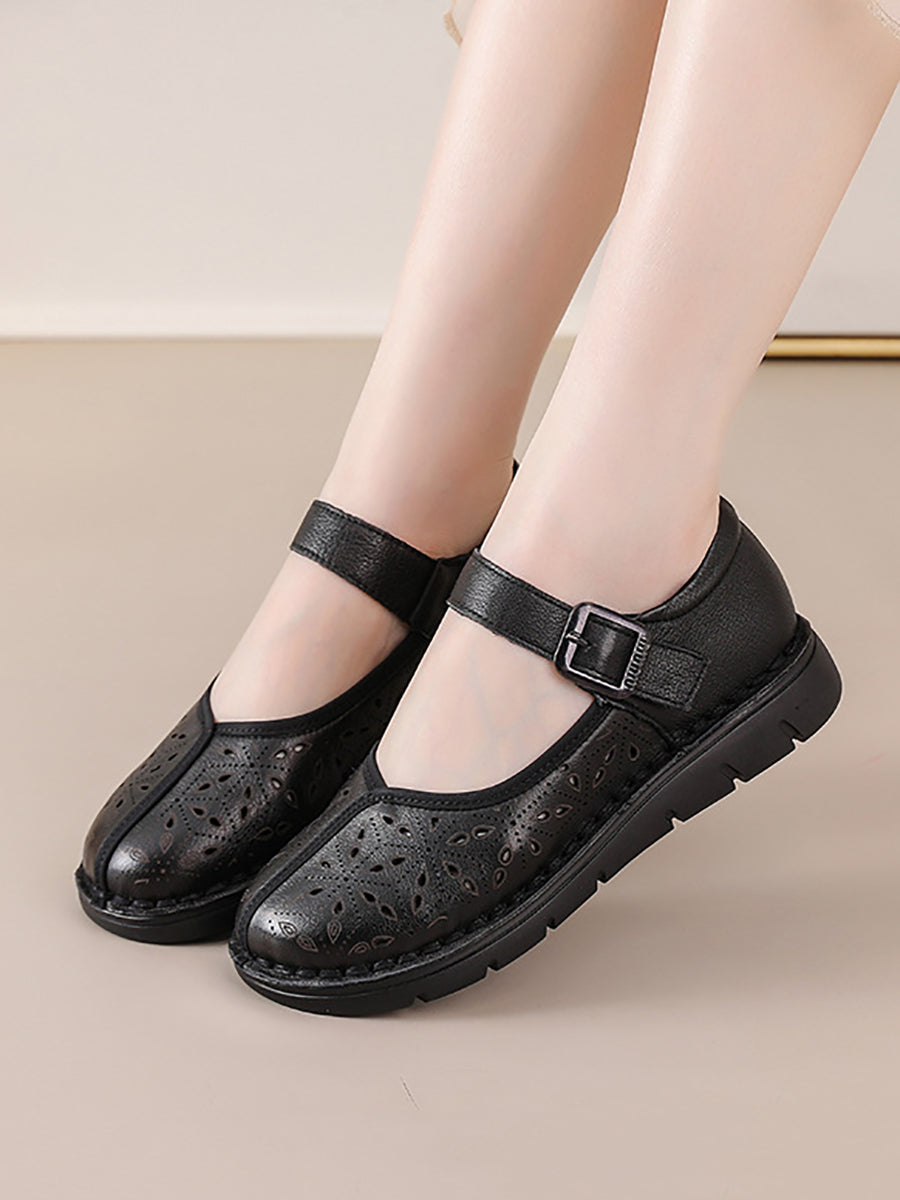 Women Summer Genuine Leather Spliced Flat Shoes