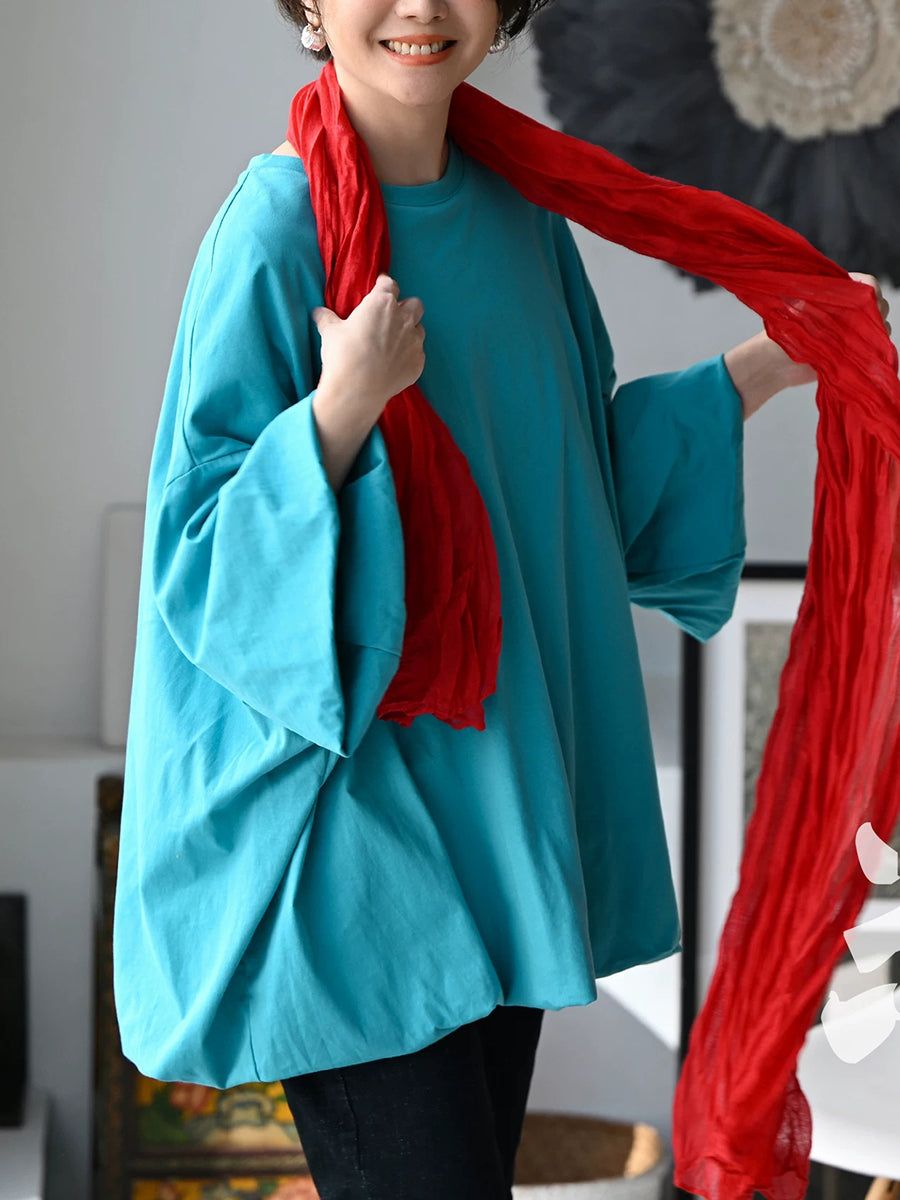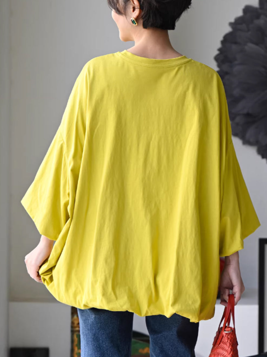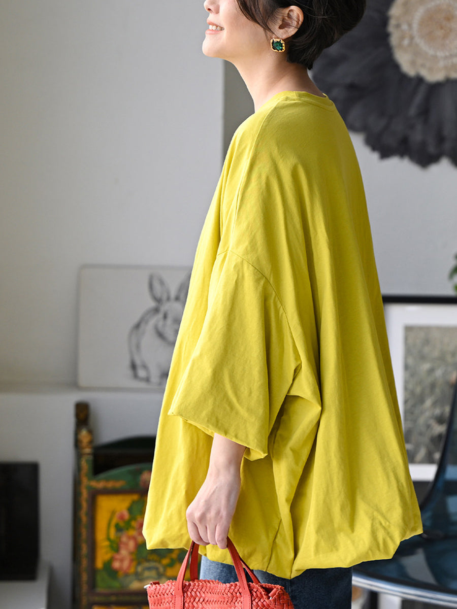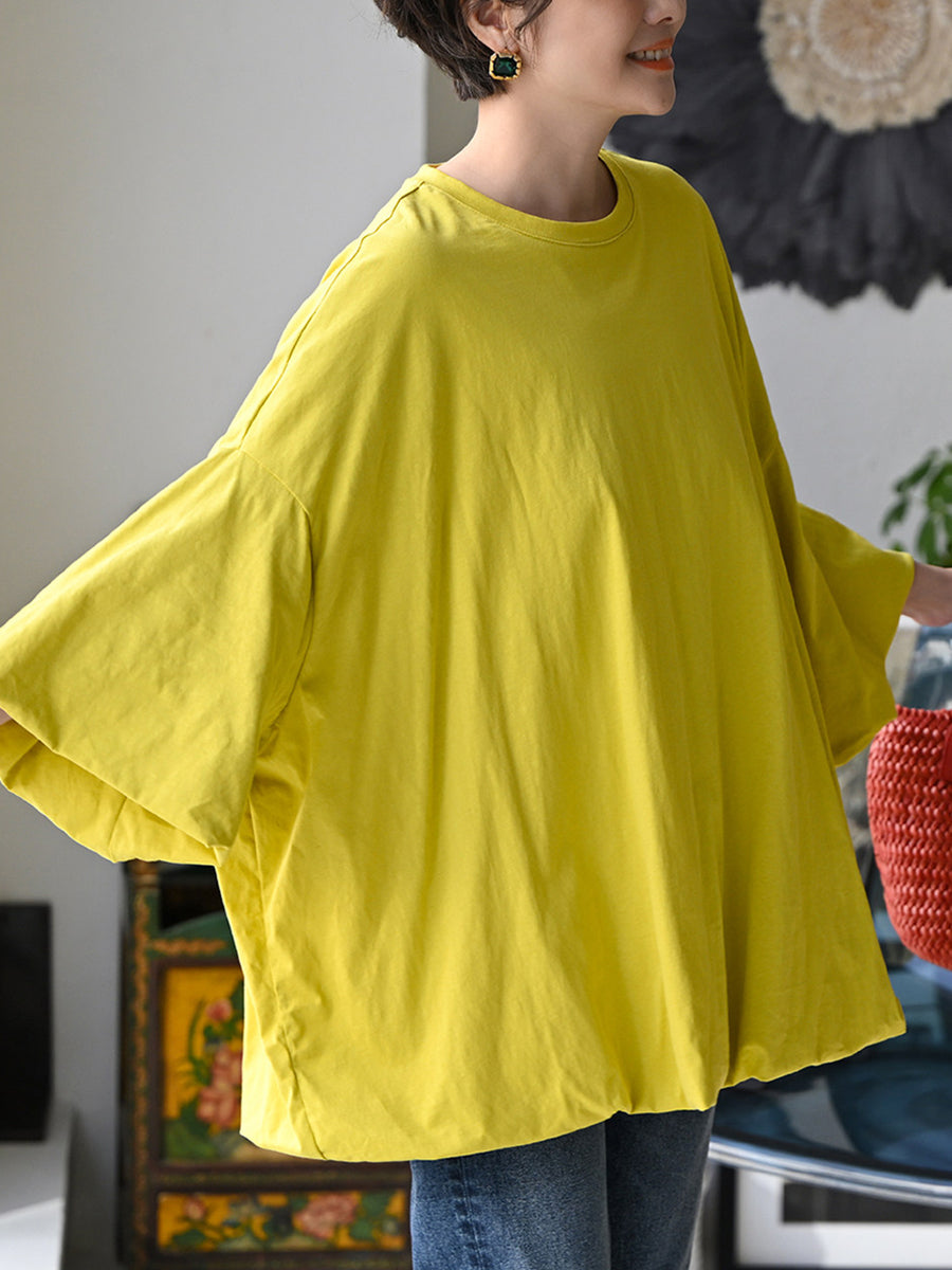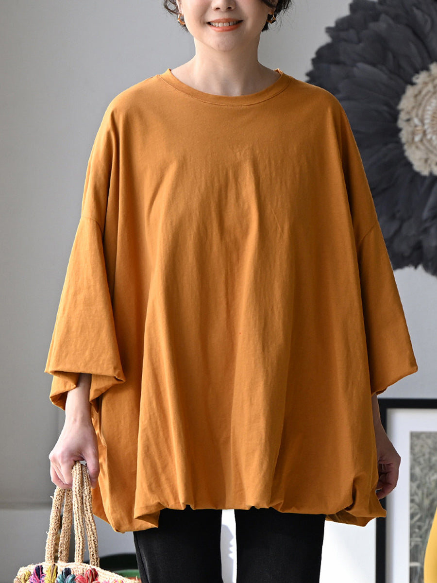 Women Summer Pure Color O-Neck 100%Cotton Blouse