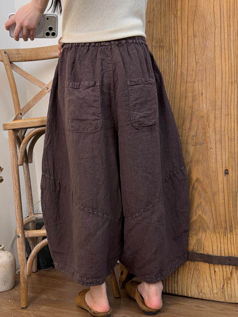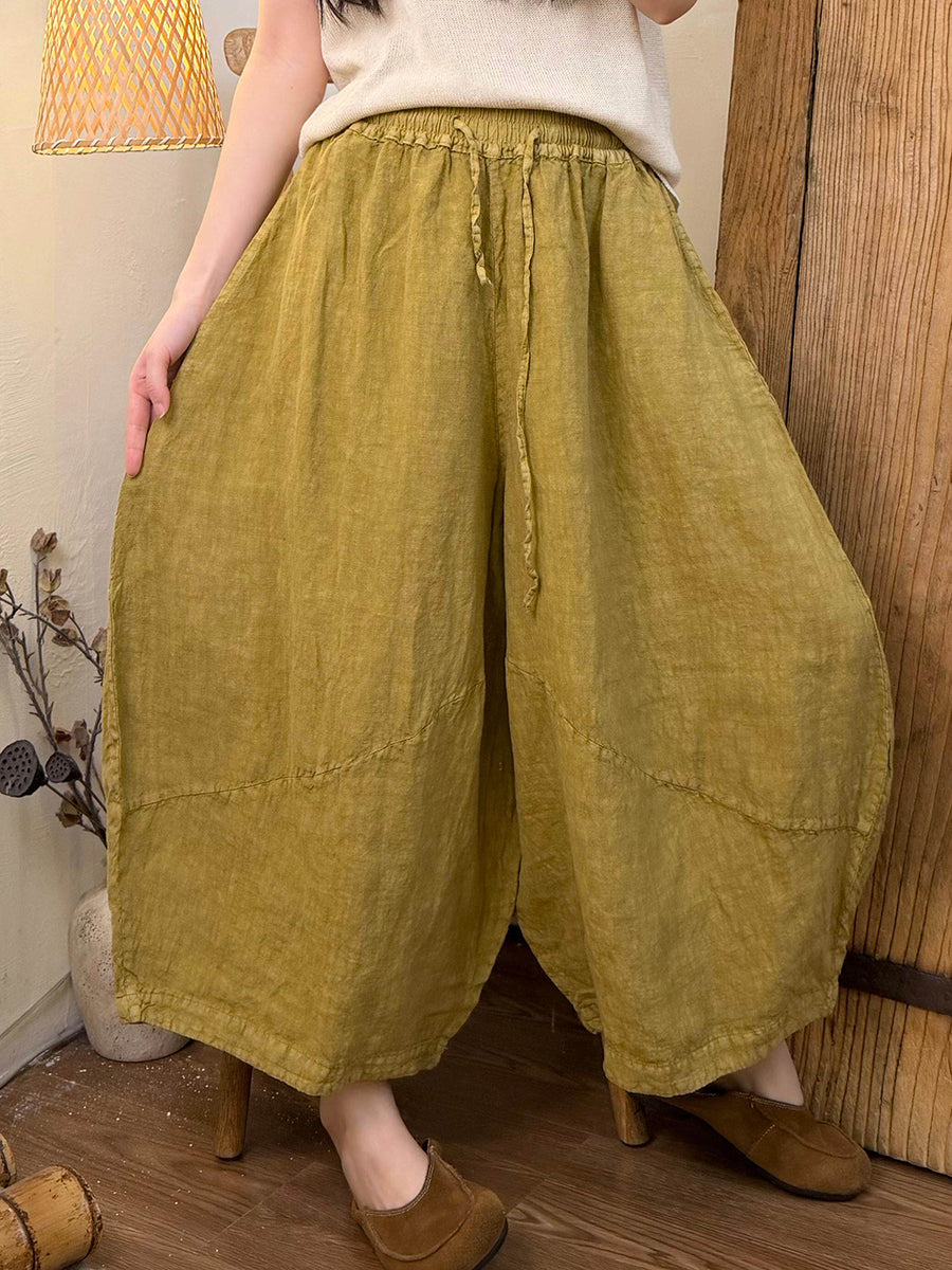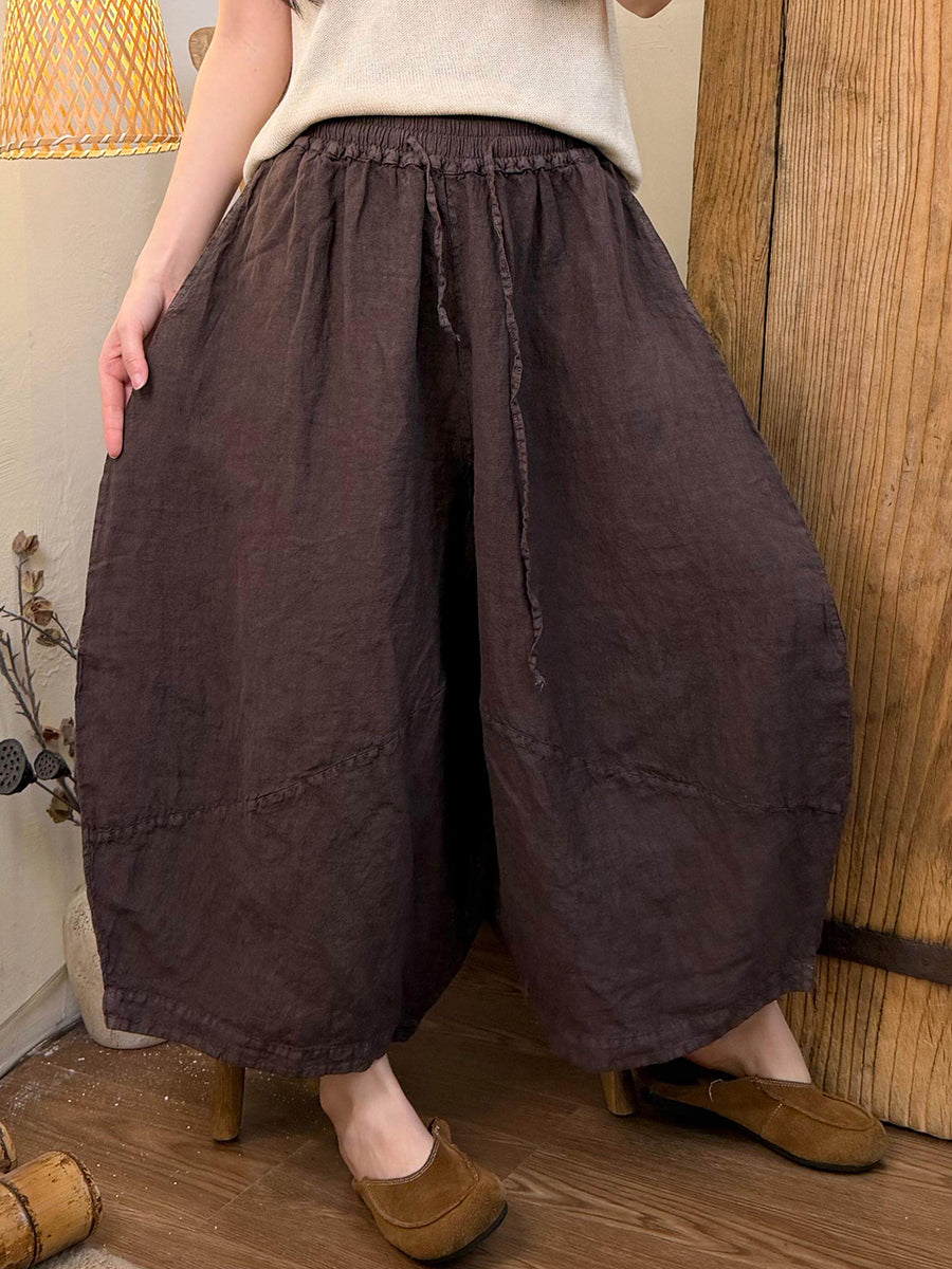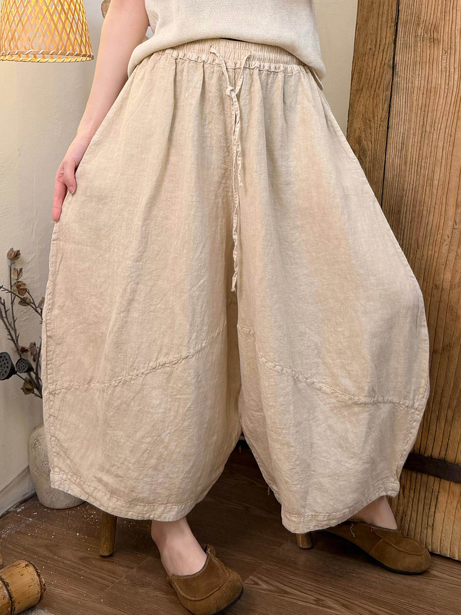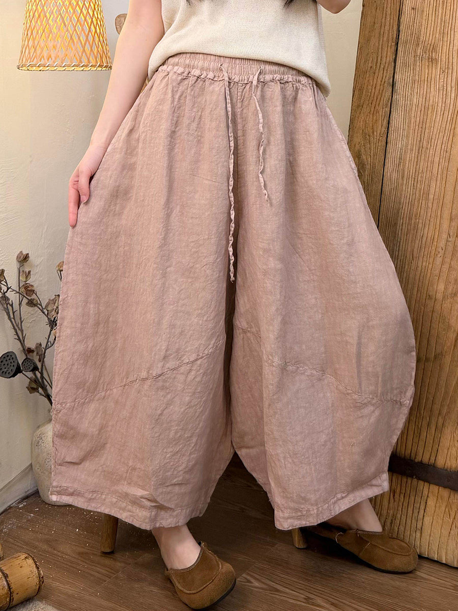 Women Summer Pure Color Linen Wide-leg Pants