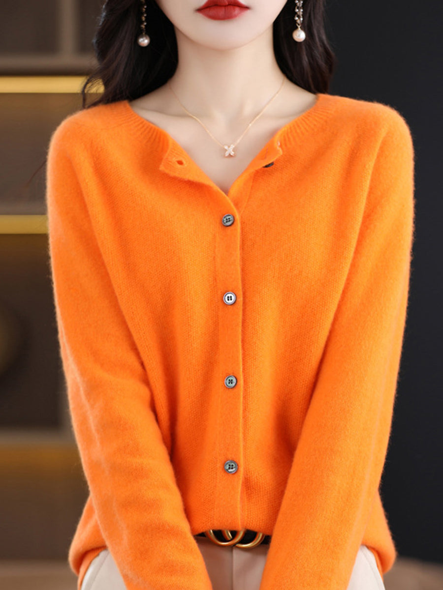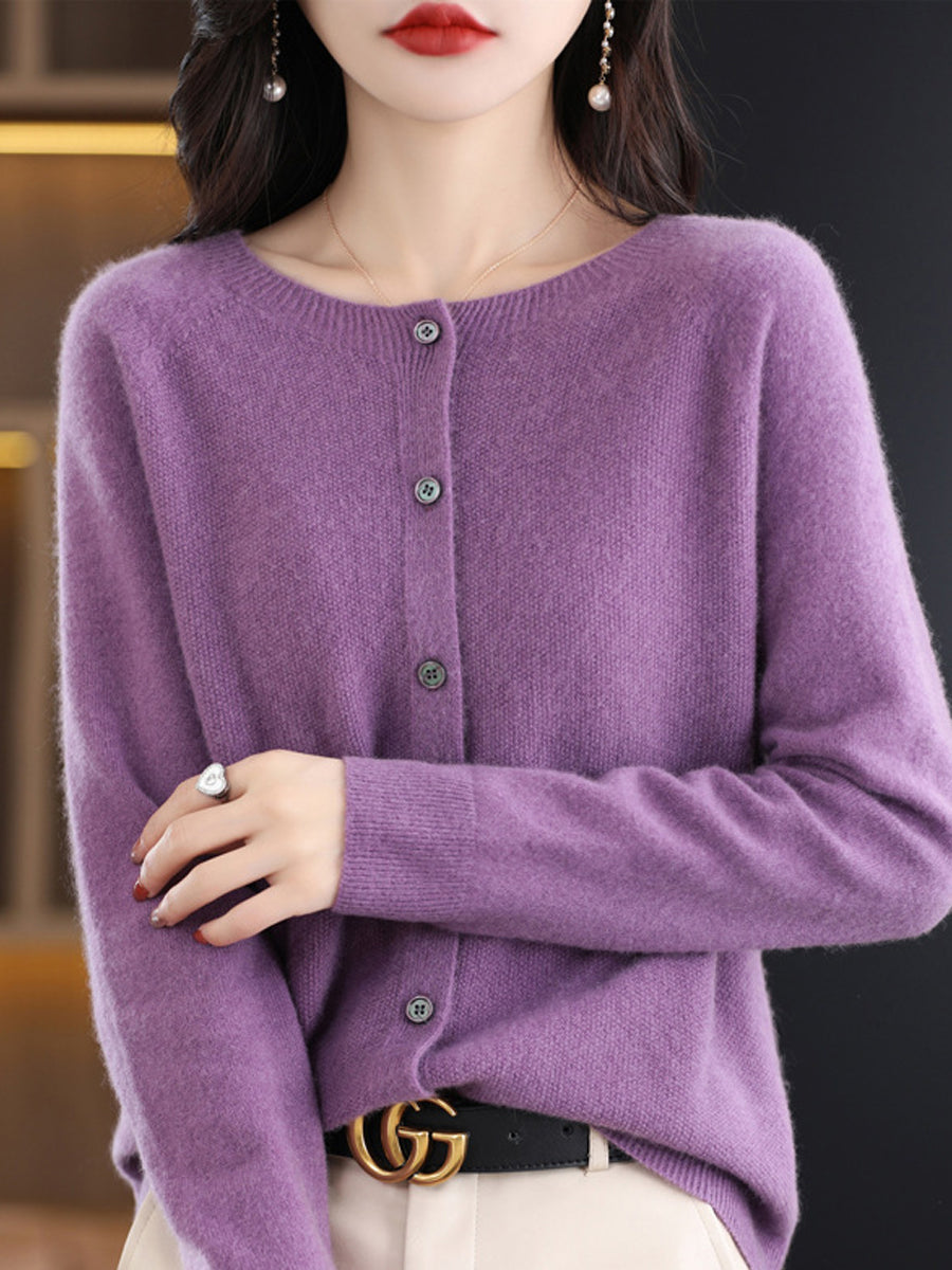 Women Autumn Casual Pure Color O-Neck Wool Sweater