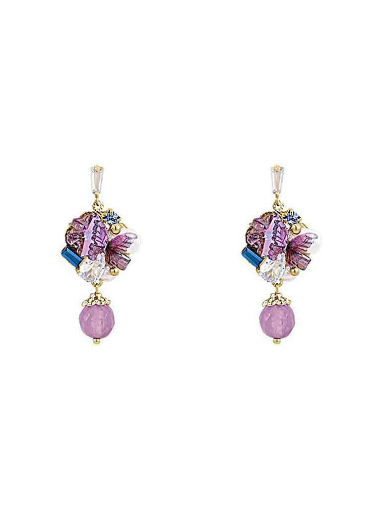Women Artsy Butterfly Bead Pearl Copper Earrings