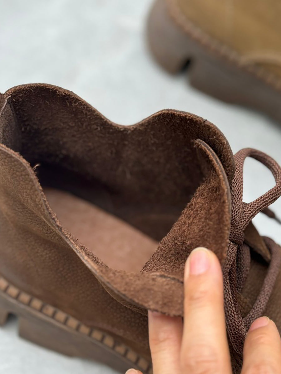 Women Retro Genuine Leather Low Heel Ankle Boots