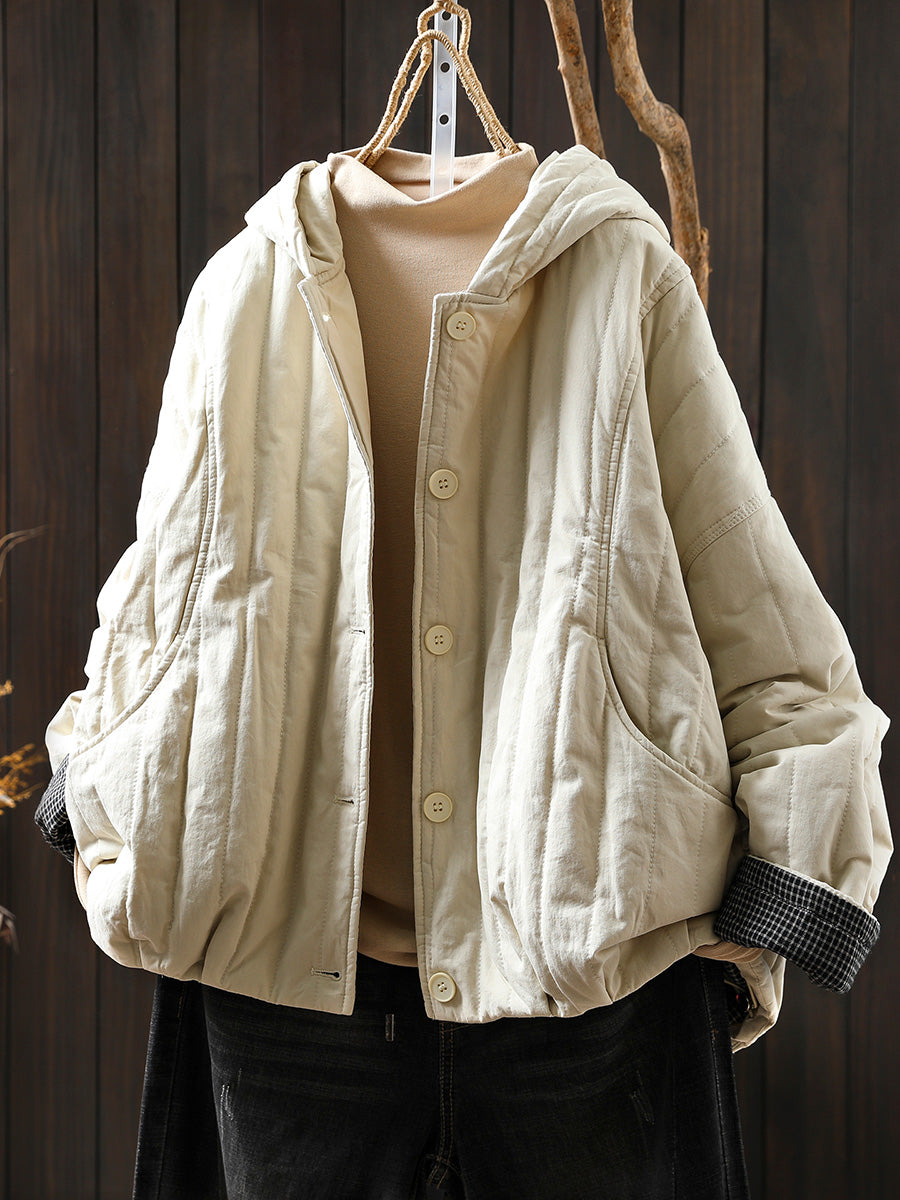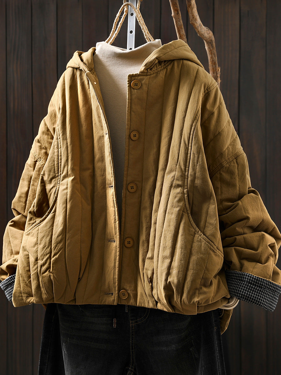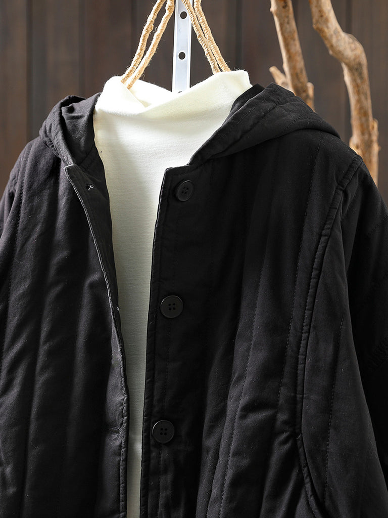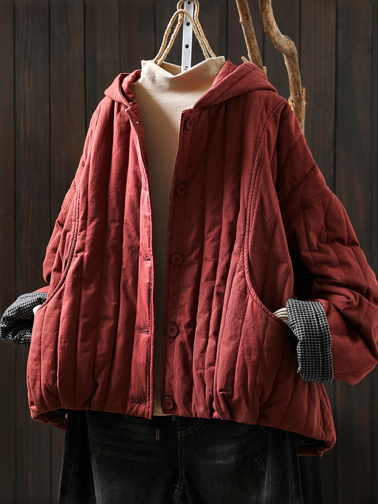 Women Winter Casual Pure Color Padded Hooded Coat