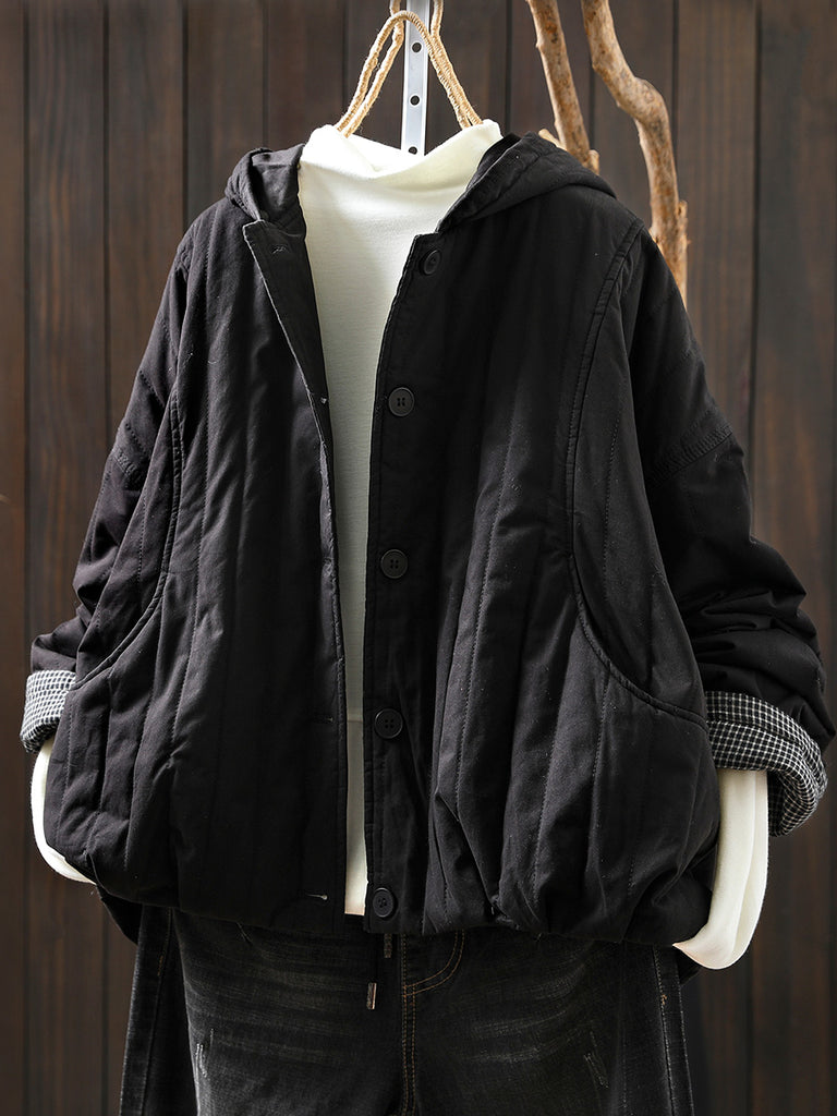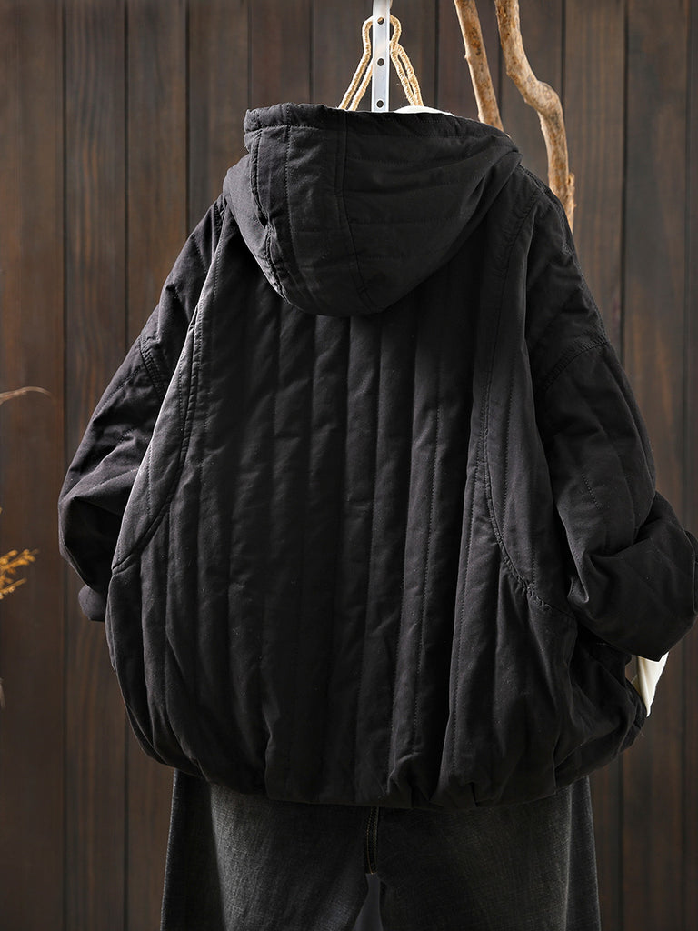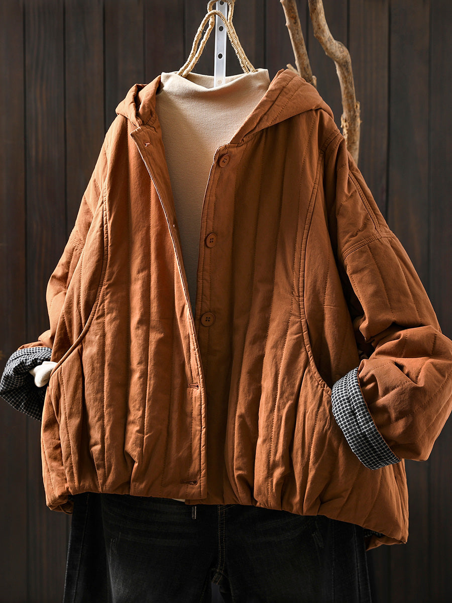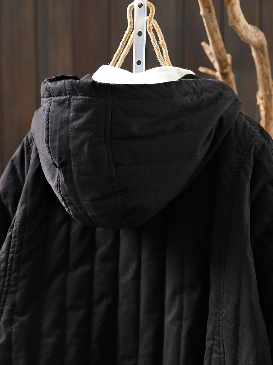 Women Winter Casual Pure Color Padded Hooded Coat