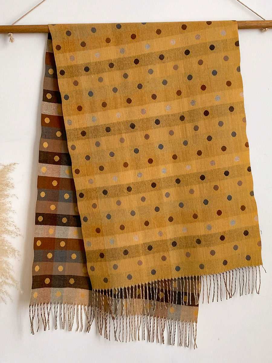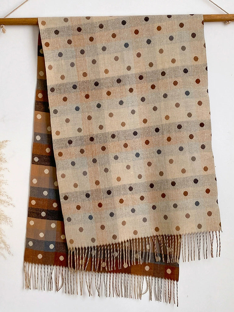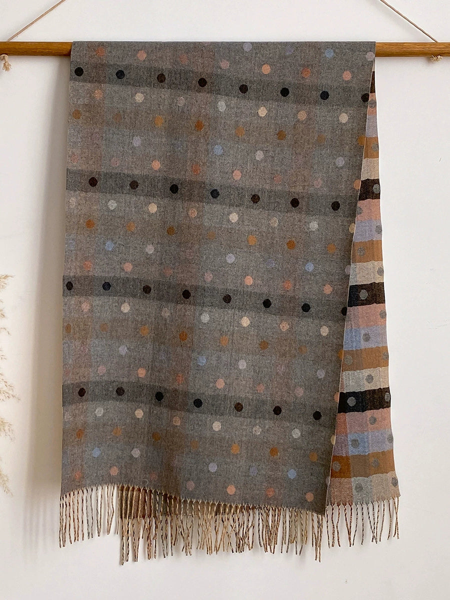 Women Winter Dot Jacquard Tassel Shawl Scarf