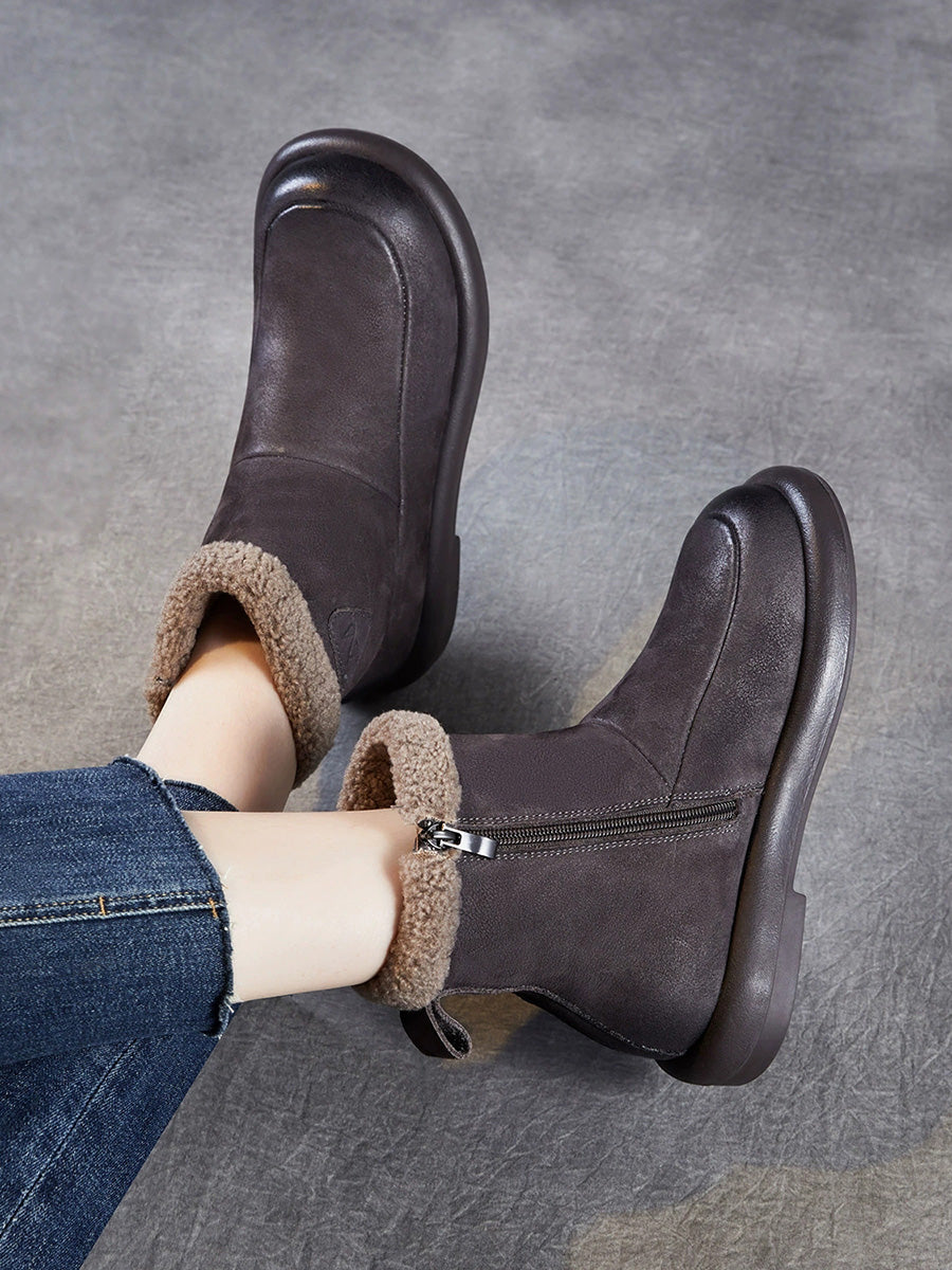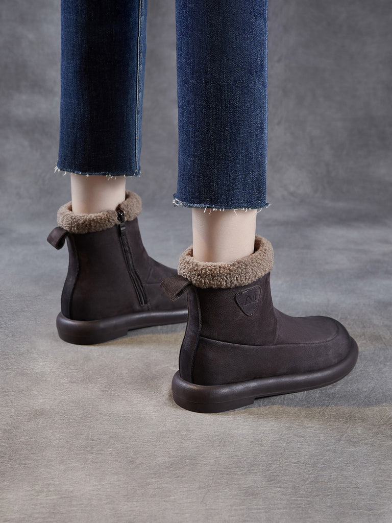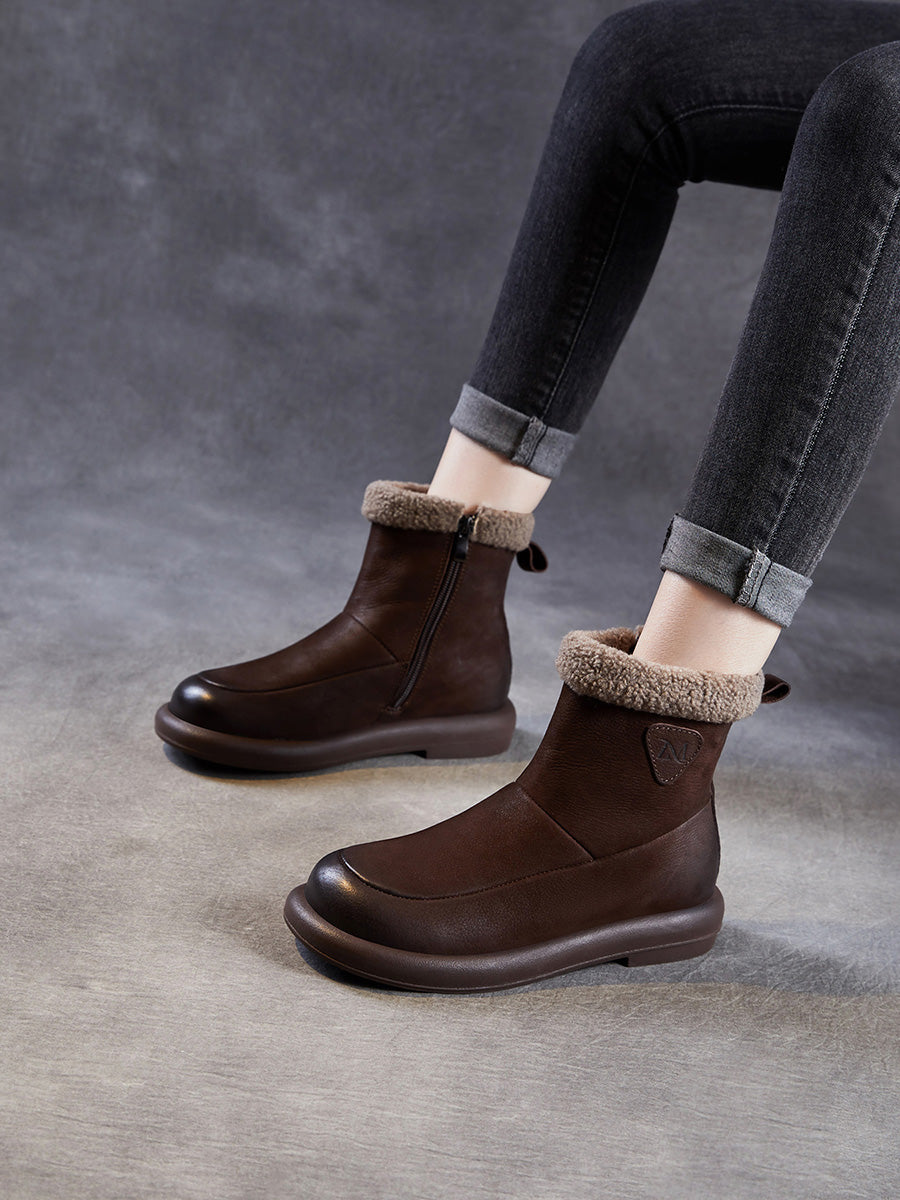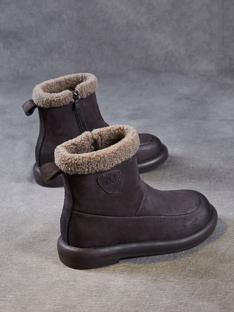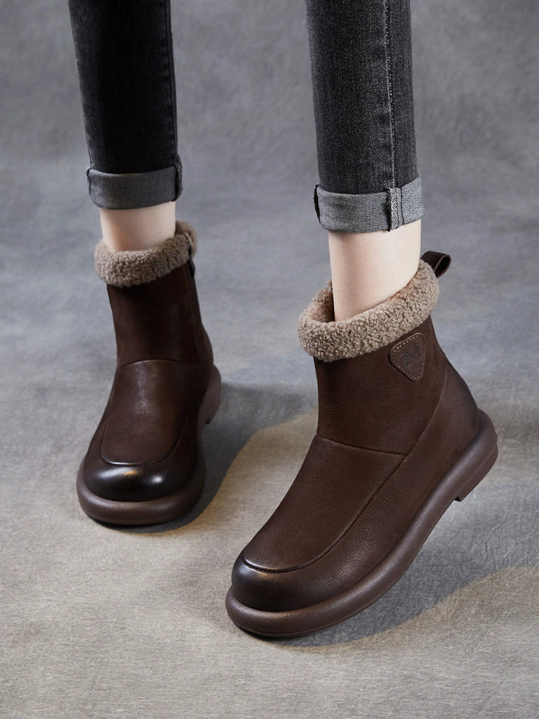Women Winter Genuine Leather Fleece-lined Boots