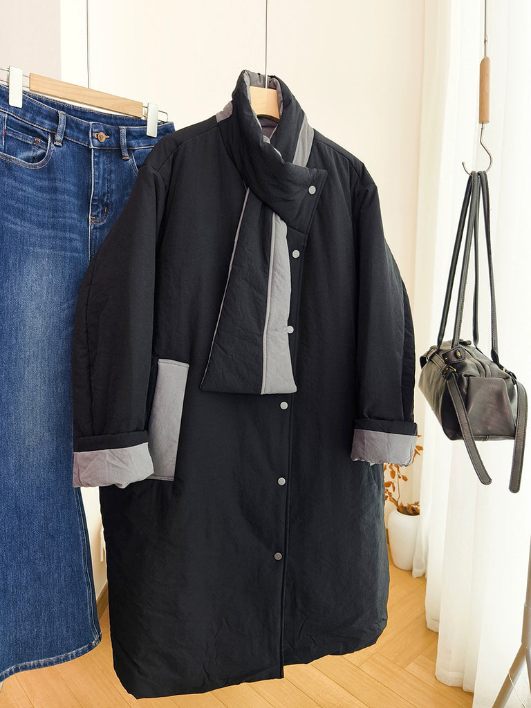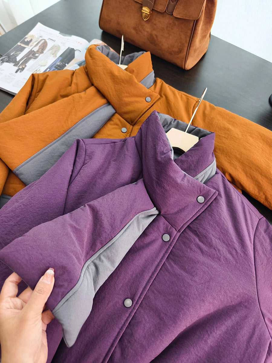 Women Winter Pure Color Turn-down Collar Padded Coat