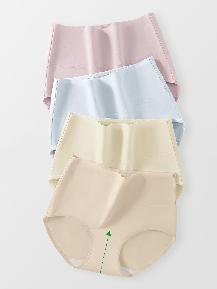4 Pieces Women Artsy Pure Color High Waist Underwear