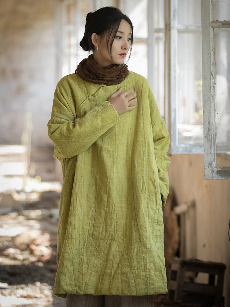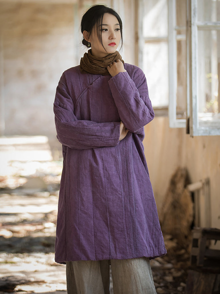 The Women Ethnic Flower Winter Ramie Padded Coat is made of 100% linen and features a beautiful flower pattern. With a classic O-neck collar and raglan sleeves in a full sleeve length, this coat embraces an ethnic style perfect for the autumn and winter seasons.