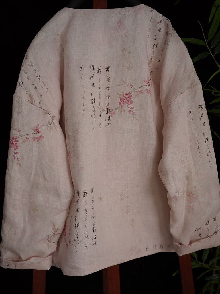 Women Ethnic Flower Winter Linen Padded Coat
