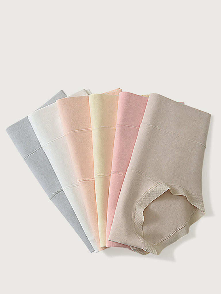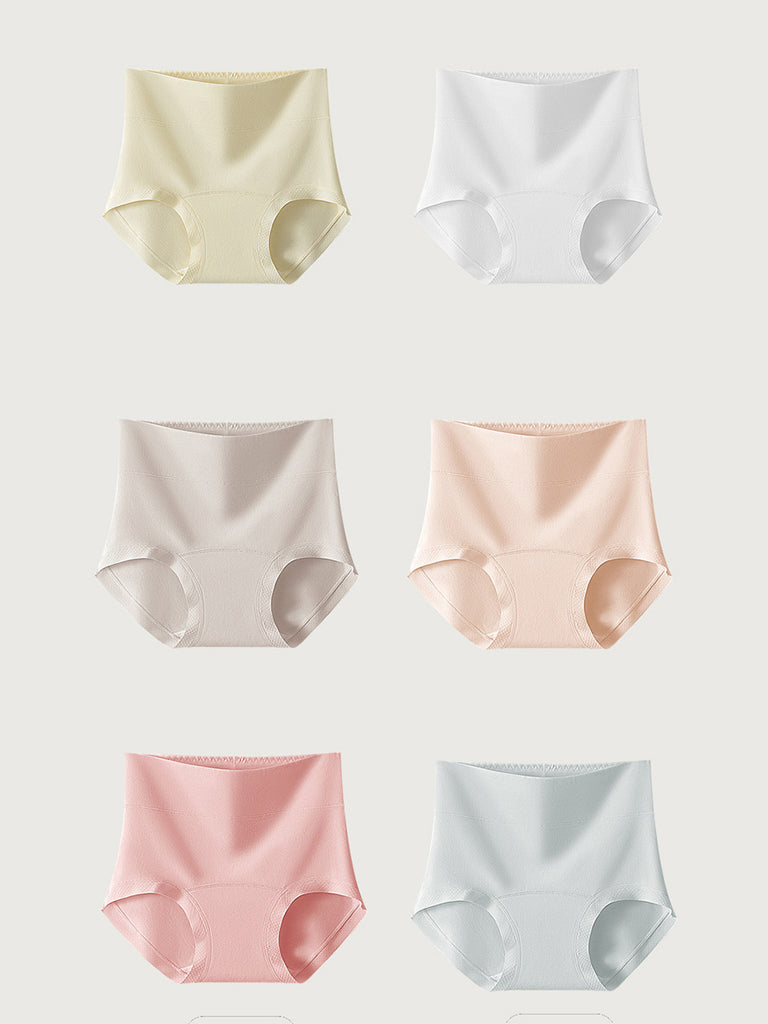 6 Pieces Women Pure Color High Waist Underwear