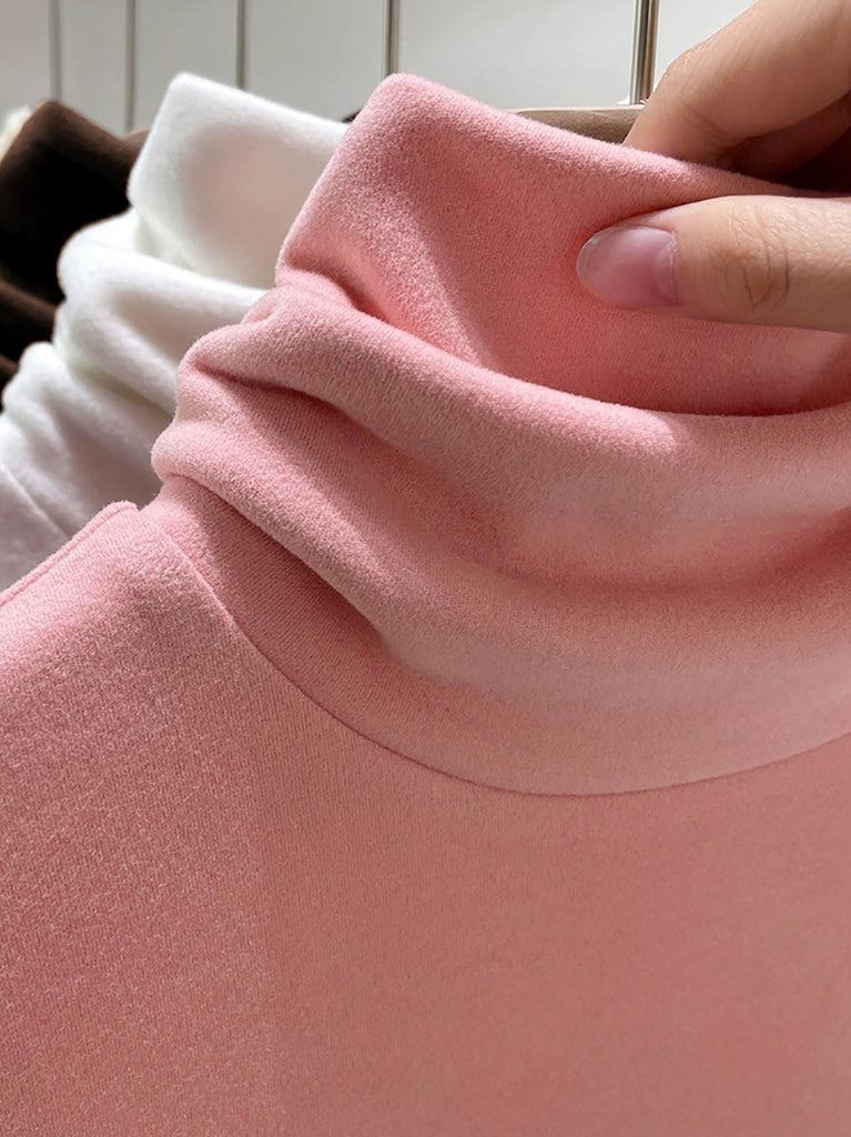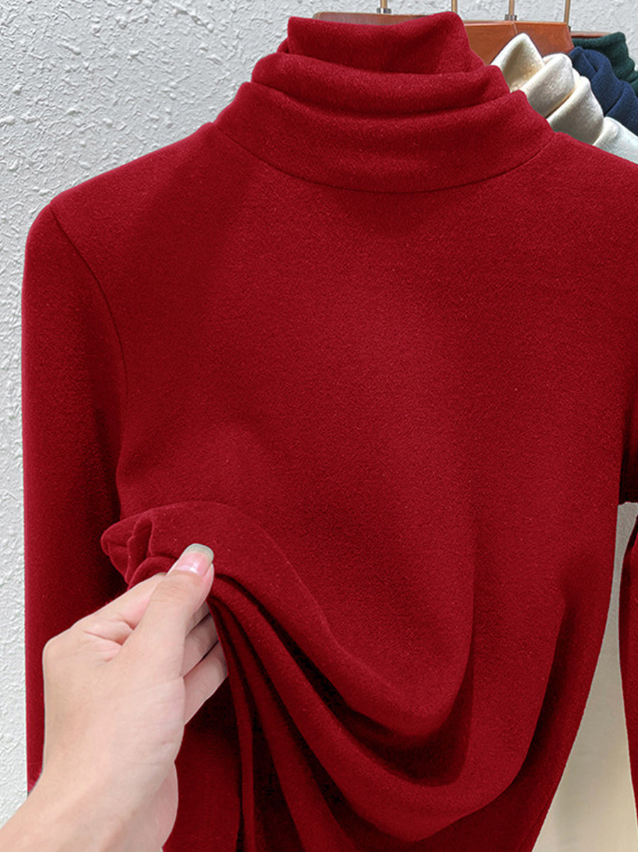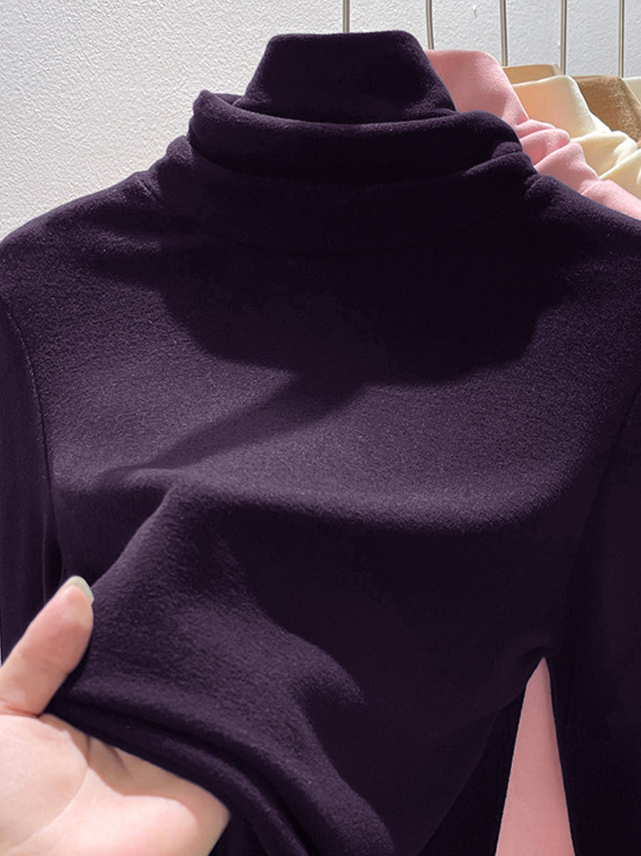 Women Autumn Casual Pure Color Turtleneck Sweater