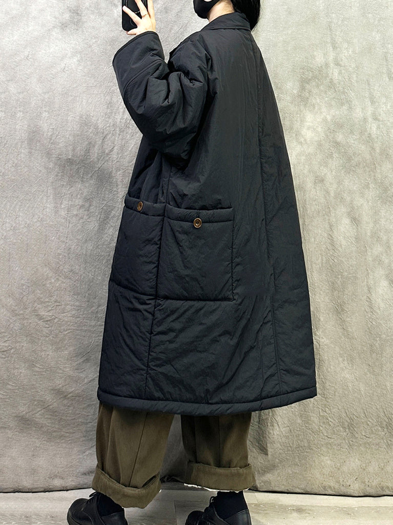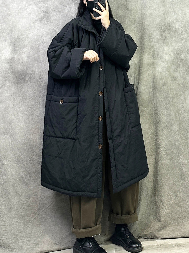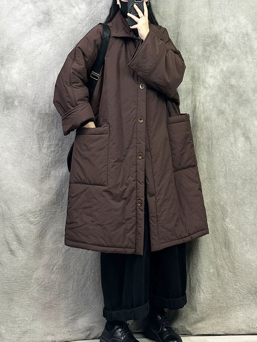 Women Winter Pure Color Padded Turn-down Collar Long Coat